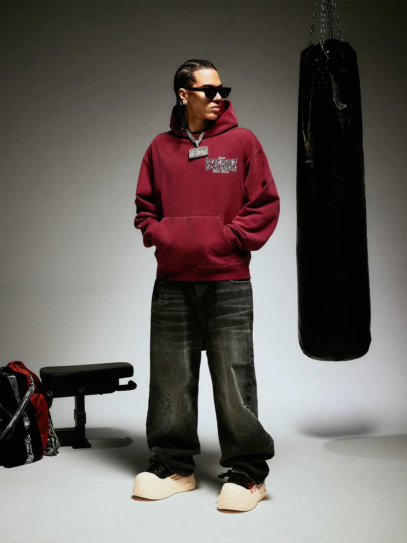 1807 BOXE Vintage Printed Washed Hoodie | Face 3 Face