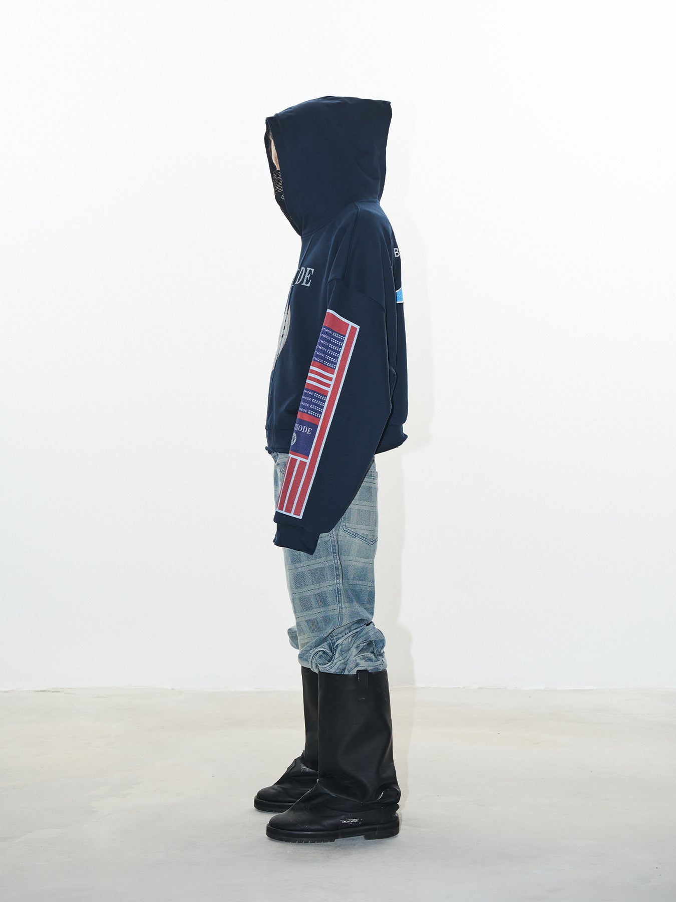 BLIND NO PLAN Reconstructed Printed Embroidered Hoodie