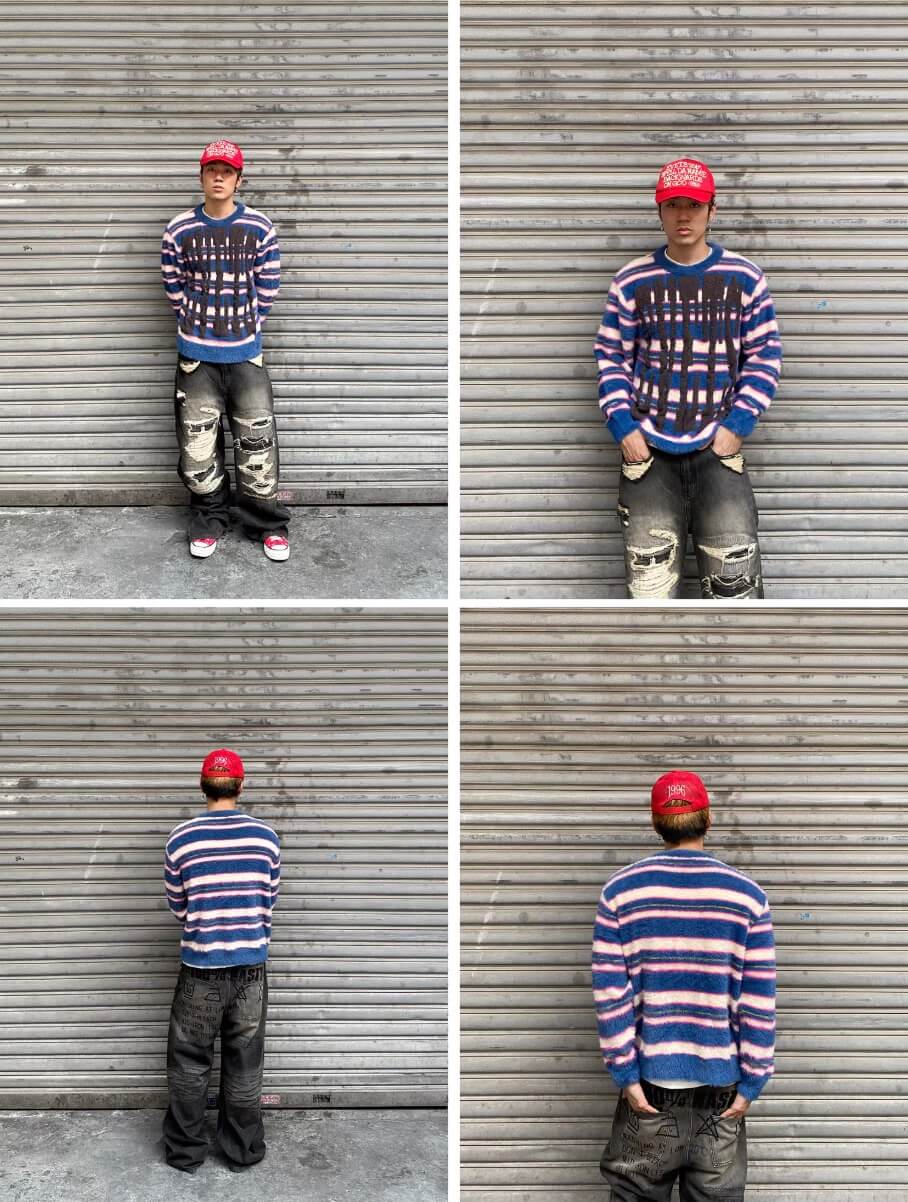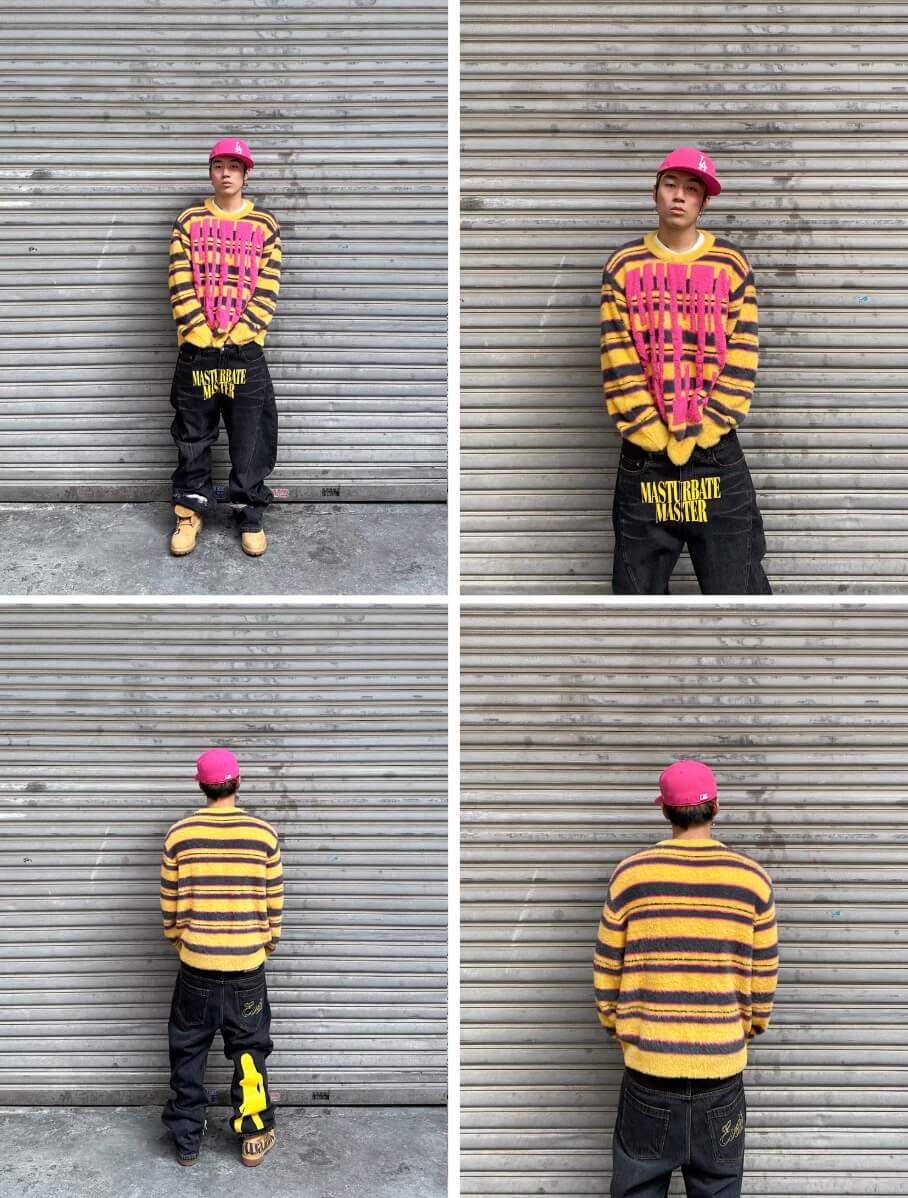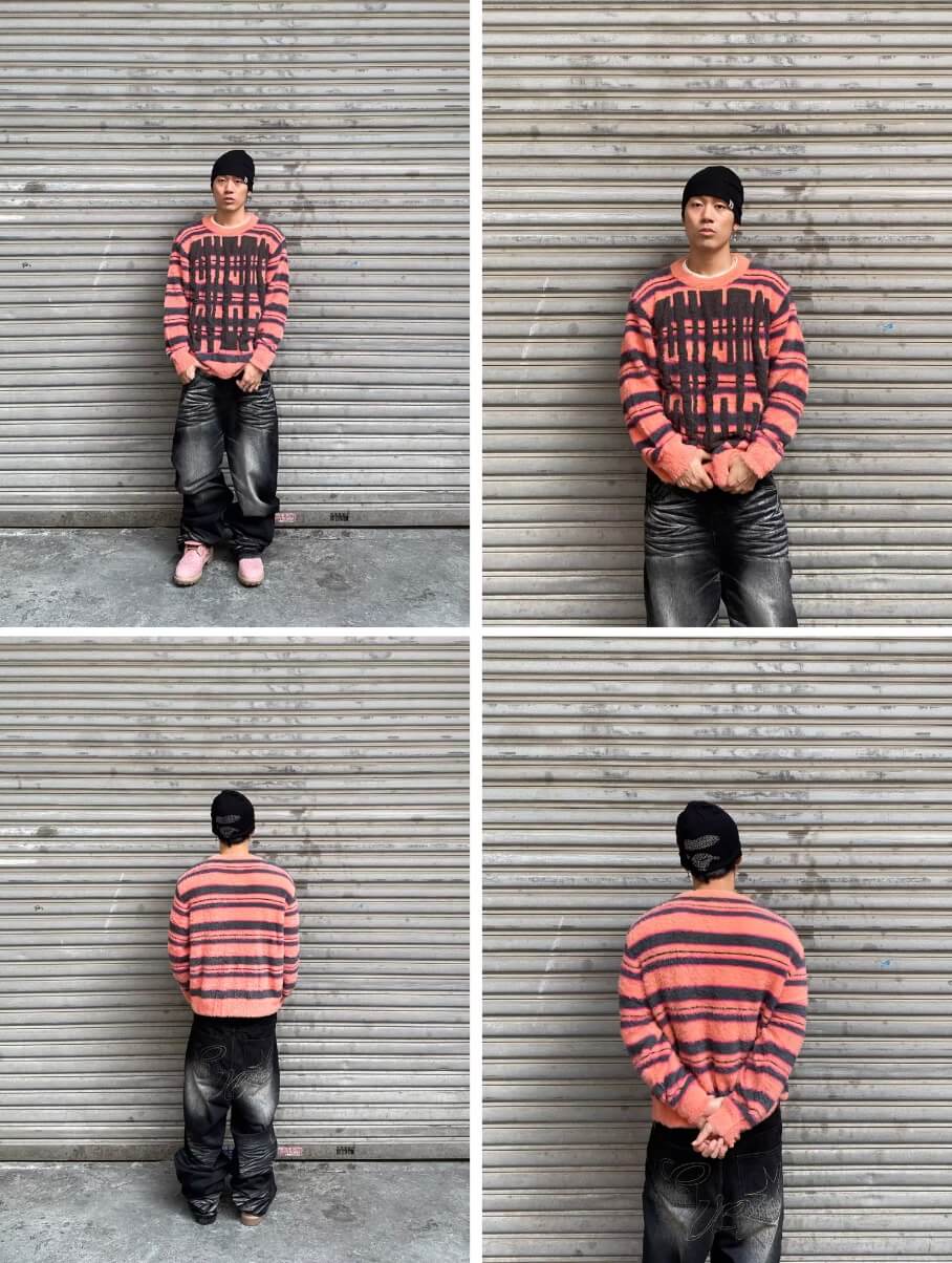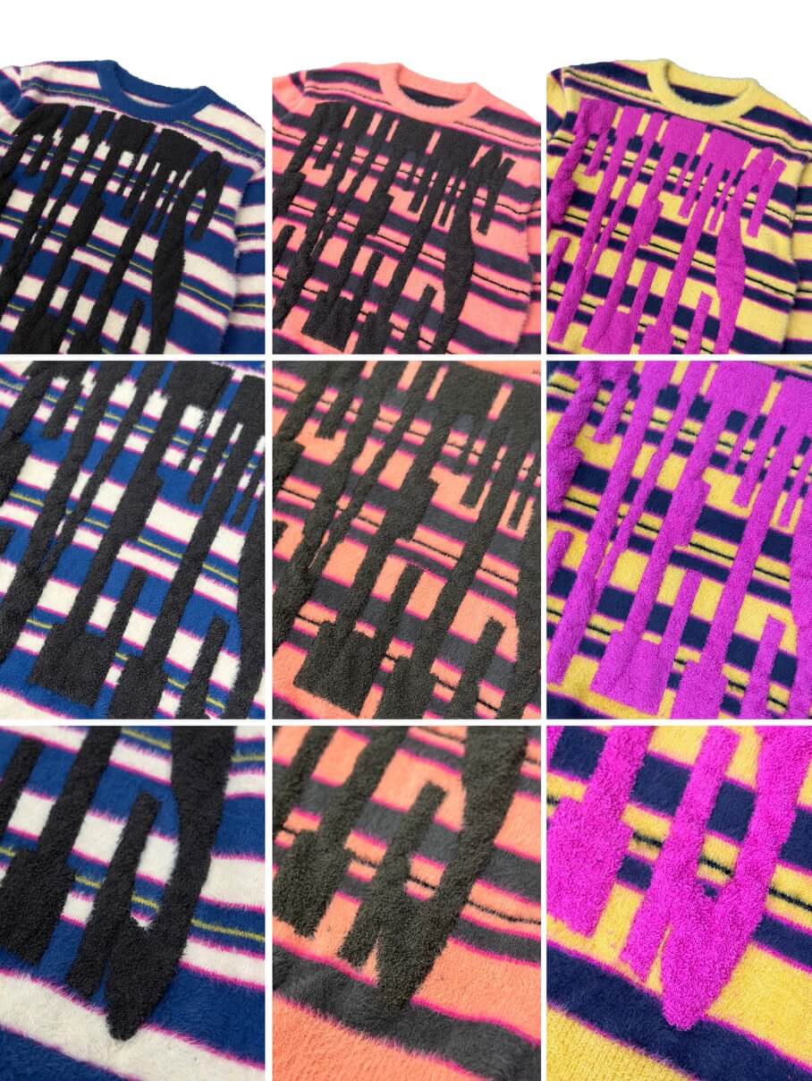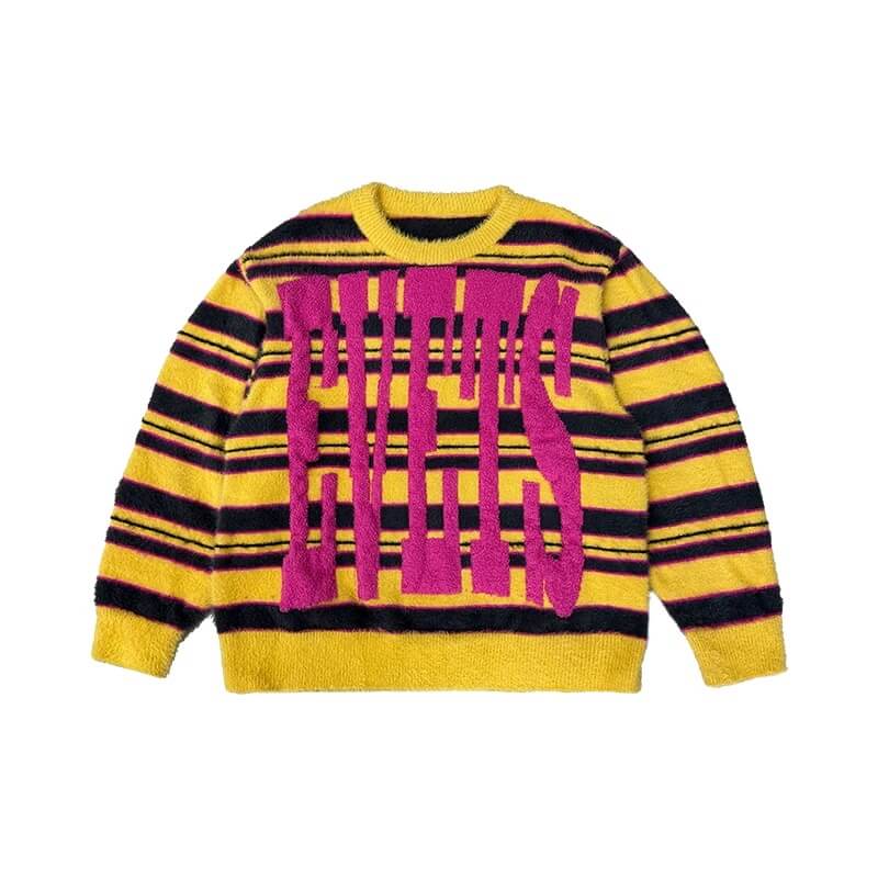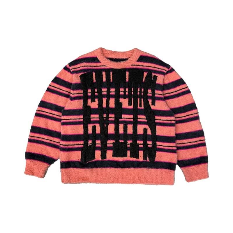 EVETS Logo Striped Fuzzy Knit Sweater | Face 3 Face