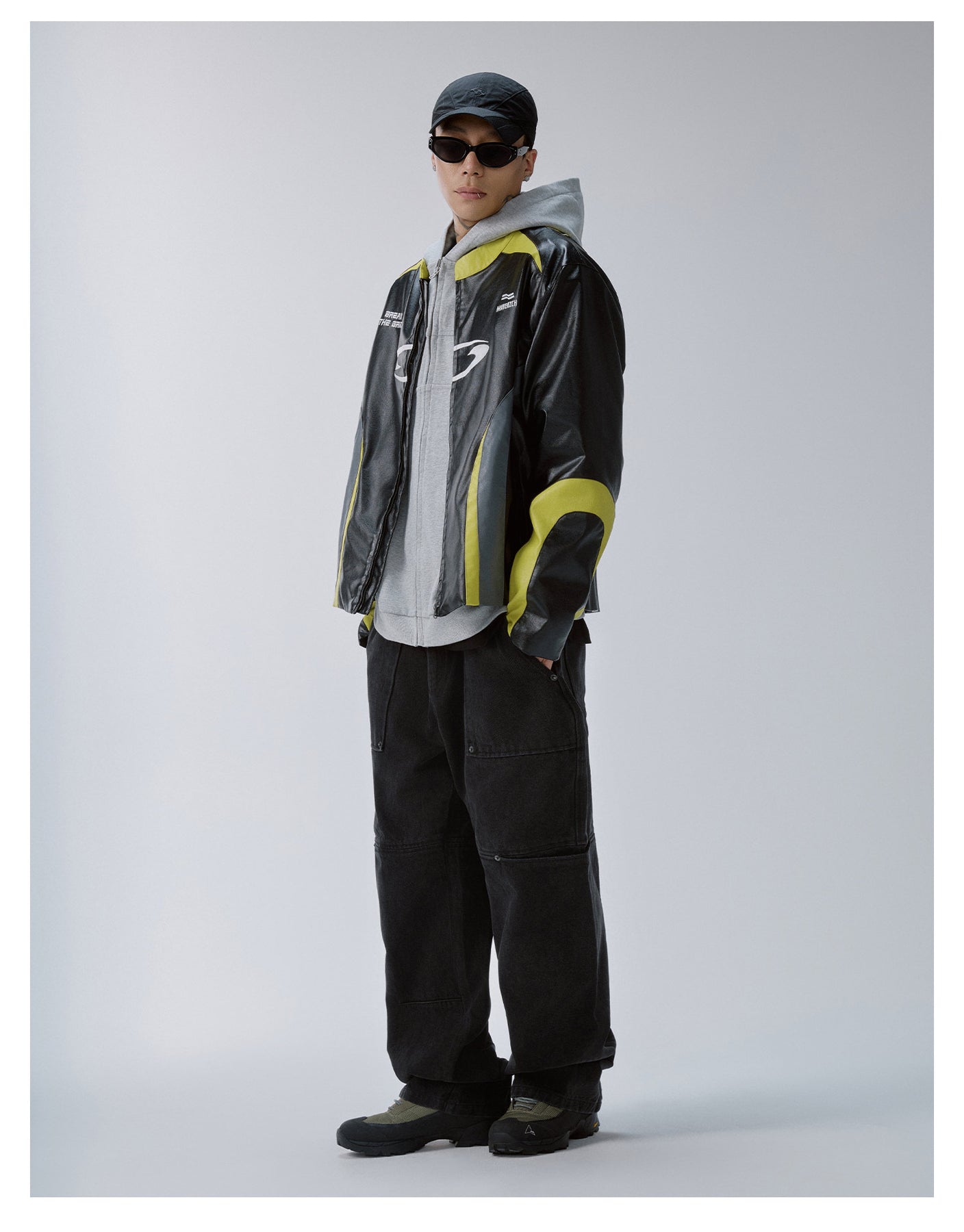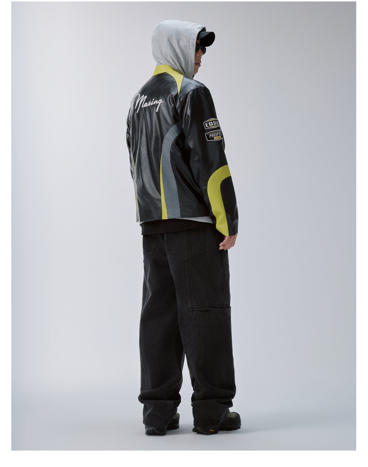 F2CE Color Block PU Leather Racing Jacket | Face 3 Face