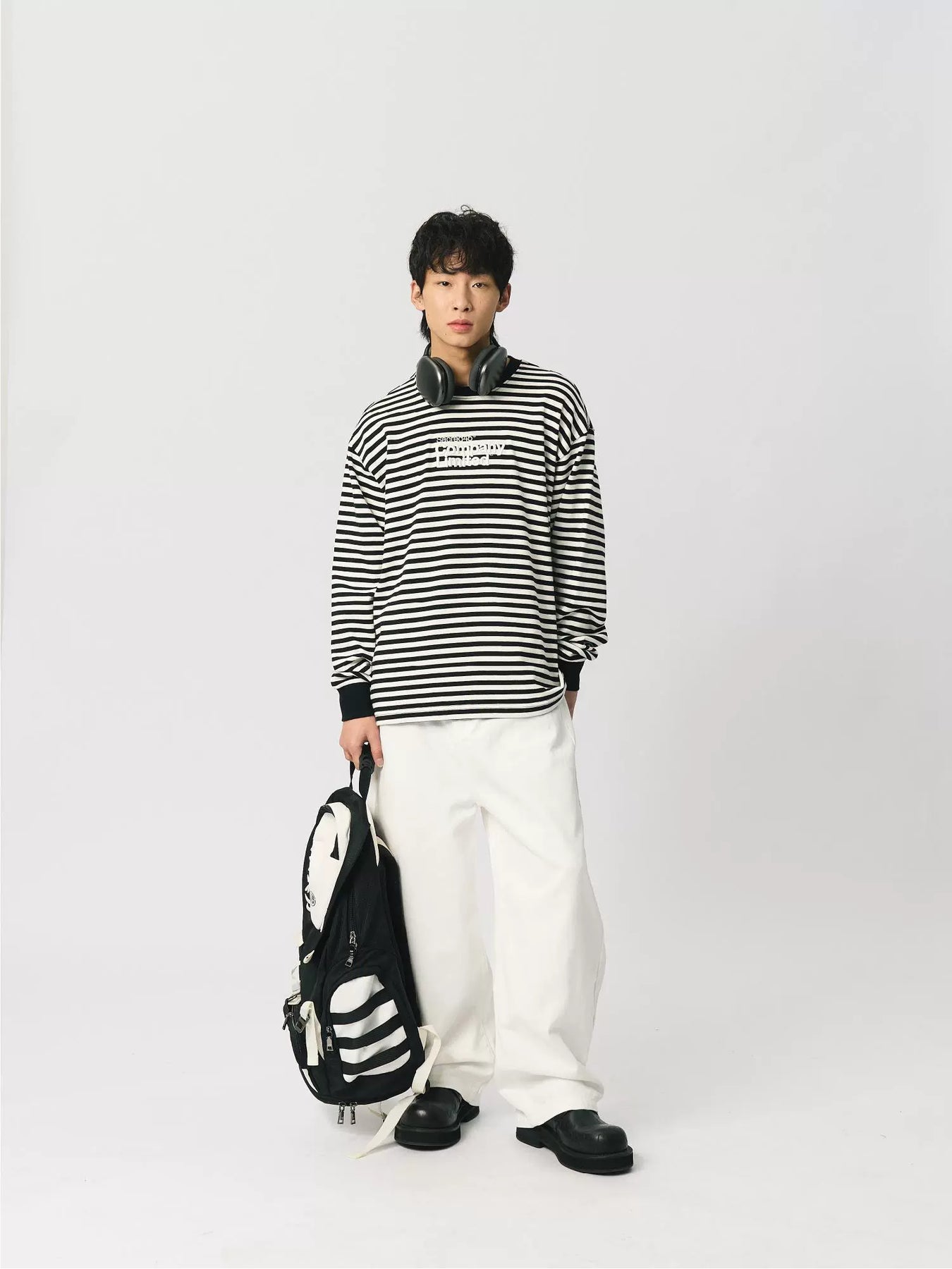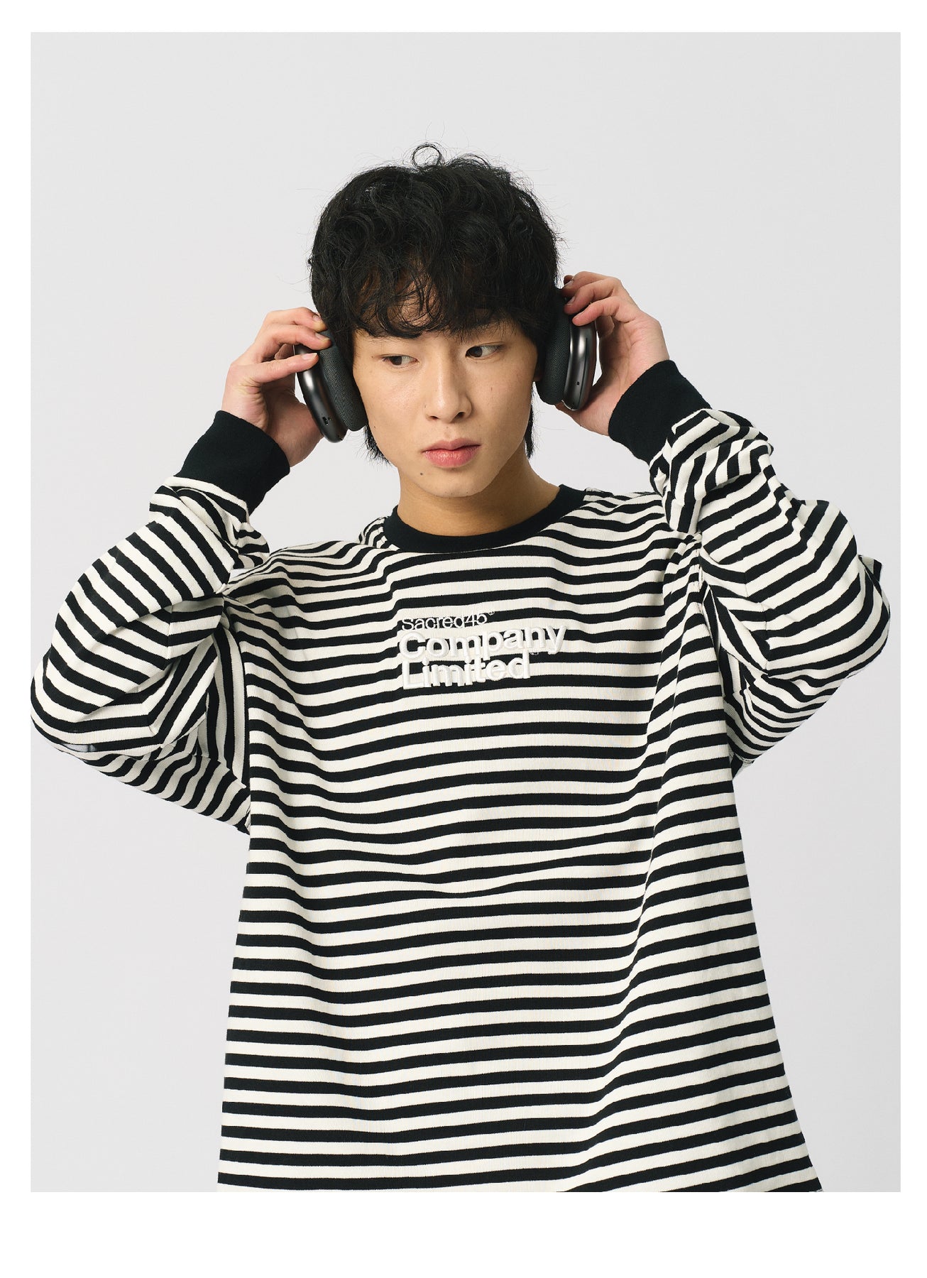 S45 Striped Embroidery Long-Sleeve Tee | Face 3 Face