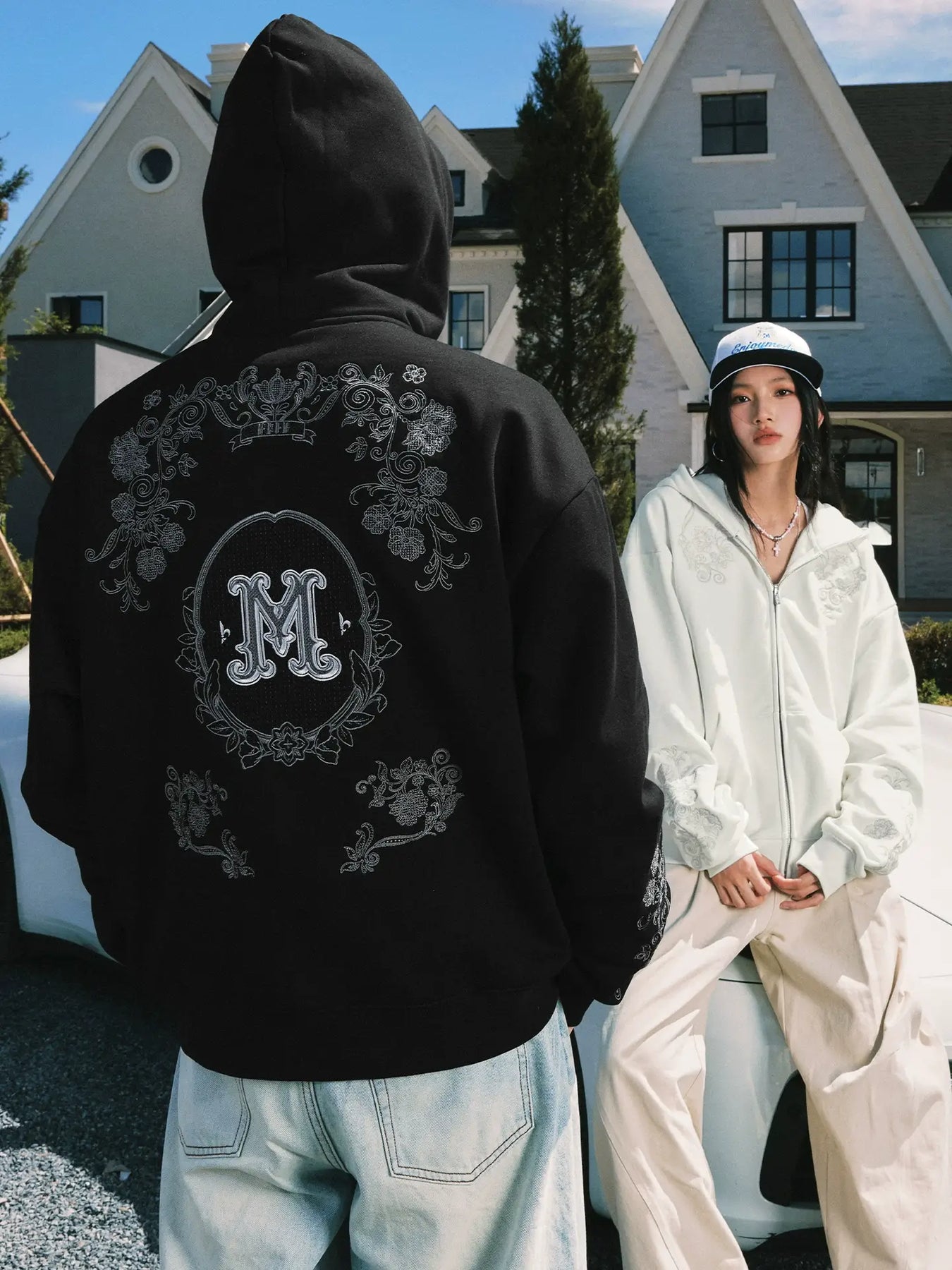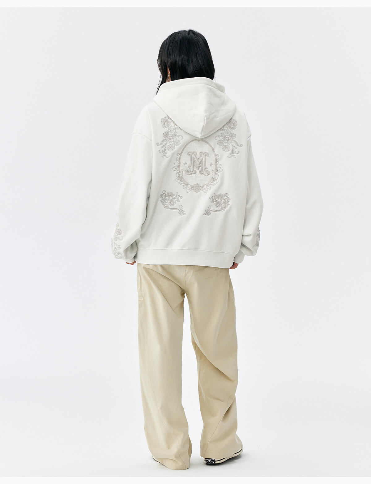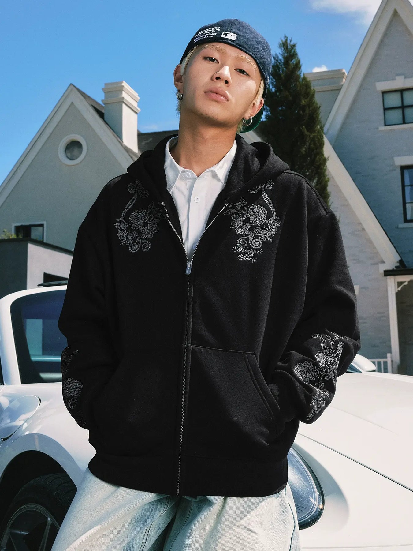 MEDM Patterned Flower Embroidered Zip Up Hoodie | Face 3 Face