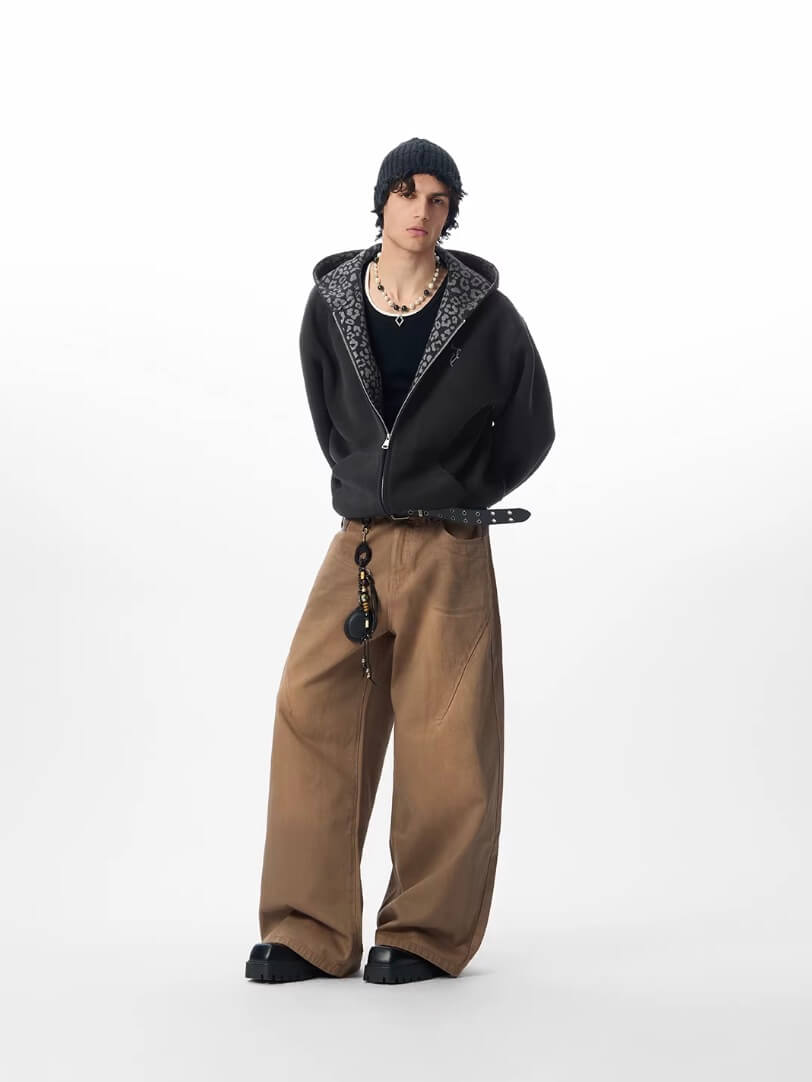 JHYQ Leopard Print Lined Cropped Hoodie