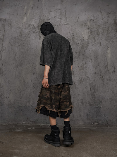 UNDERWATER Black Sand-Washed Faded Deconstructed Tee | Face 3 Face