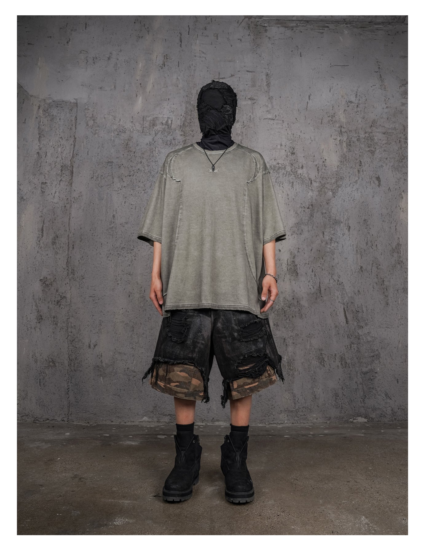 UNDERWATER Gray Sand-Washed Faded Deconstructed Tee | Face 3 Face