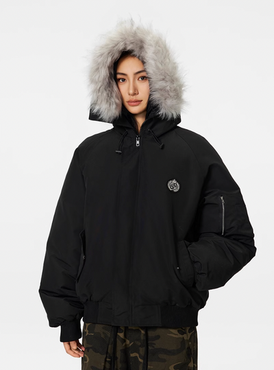 Achock Faux Fur Hooded MA-1 Bomber Jacket