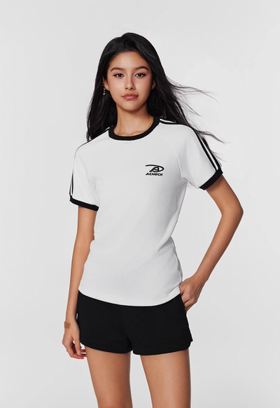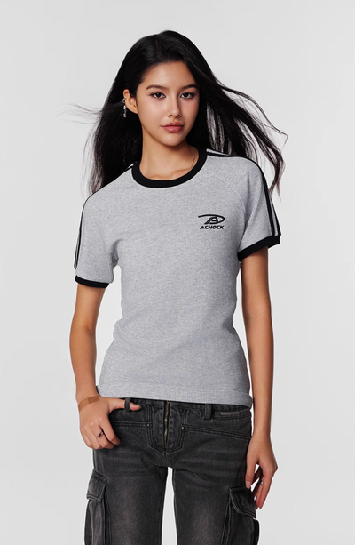 Achock Striped Girls Slim Short Waffle Knit Tee | Face 3 Face