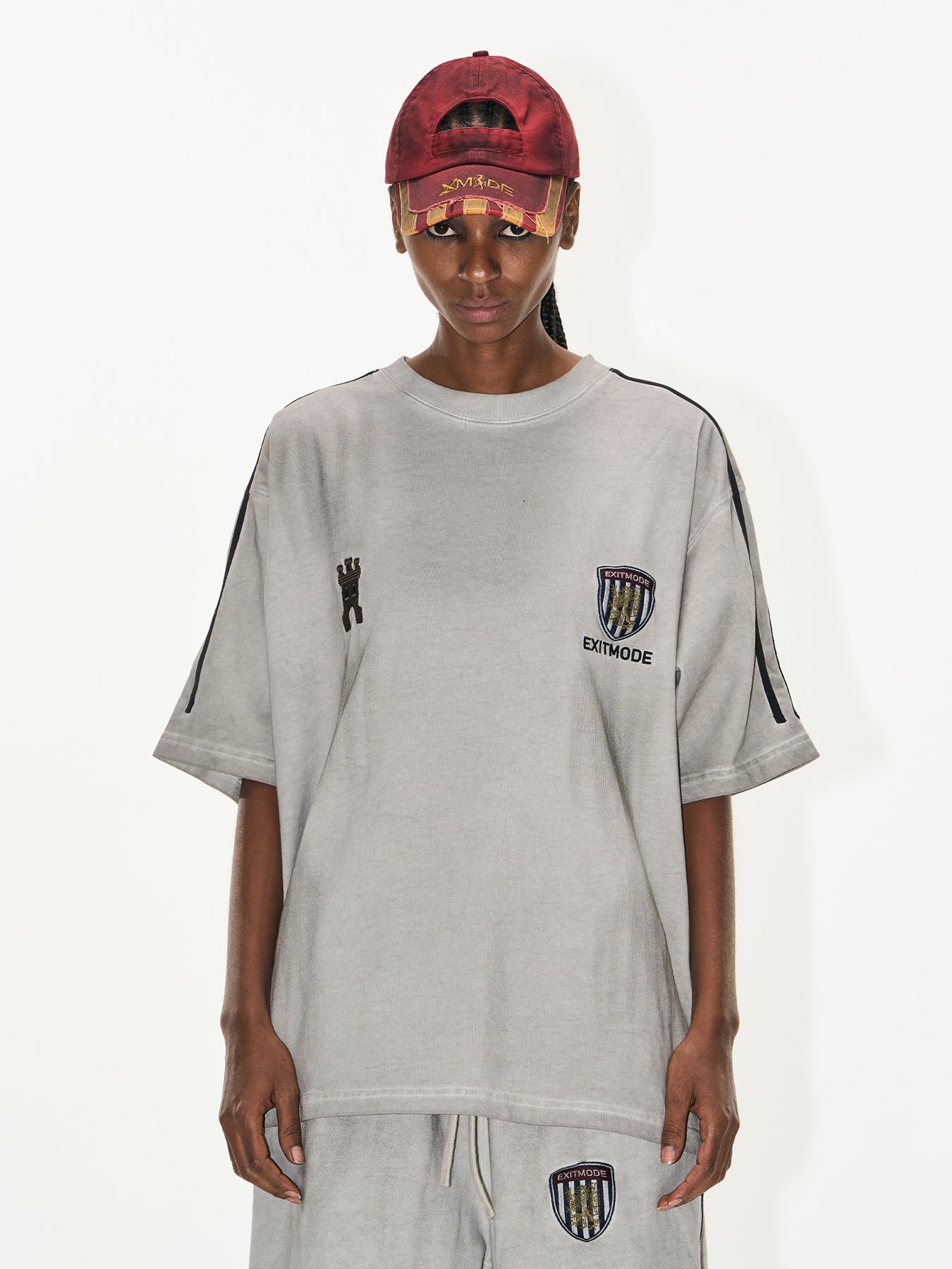 BLIND NO PLAN Distressed Washed Sports Badge Tee