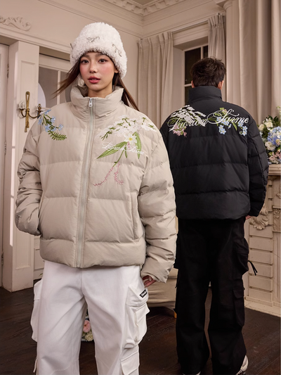 Harsh and Cruel Classic Flower Embroidery Puffer Jacket