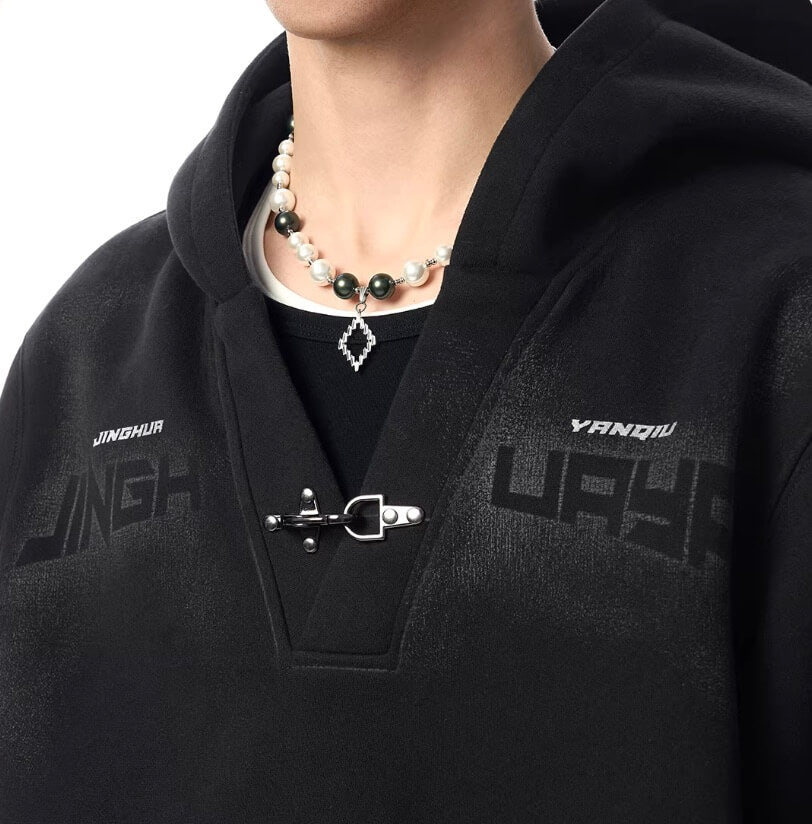JHYQ Metal Buckle V Neck Cropped Hoodie
