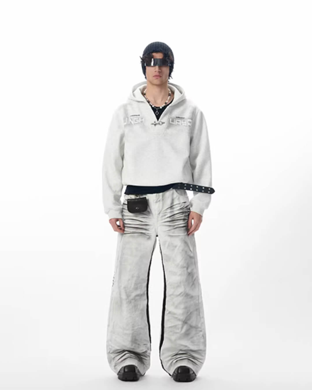 JHYQ Metal Buckle V Neck Cropped Hoodie | Face 3 Face