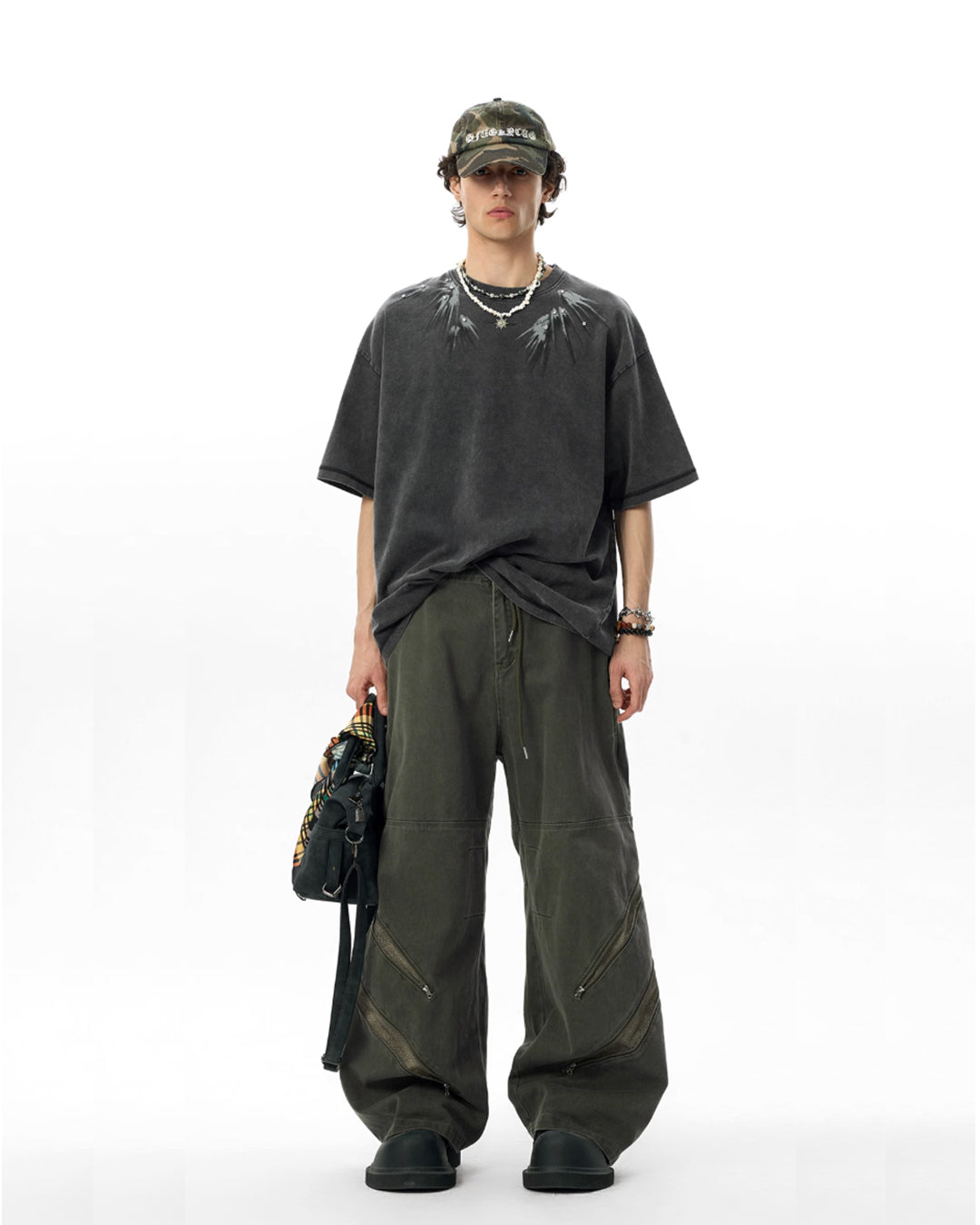 JHYQ Washed Diamond Studs Flash Print Tee | Face 3 Face