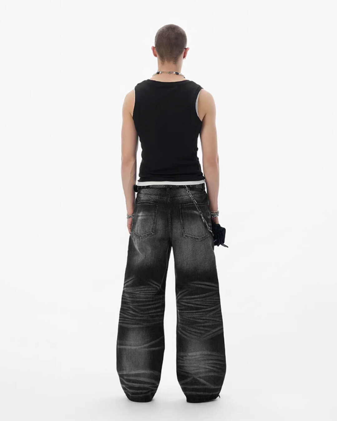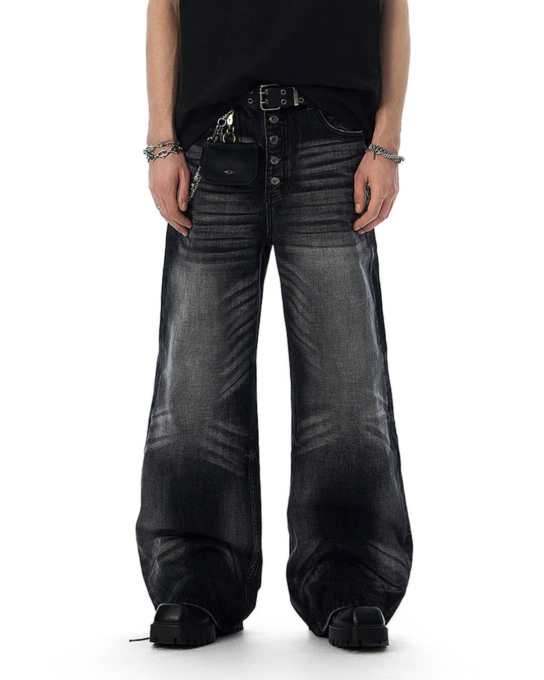 JHYQ Black Multi Button Whiskered Washed Loose Fit Jeans | Face 3 Face