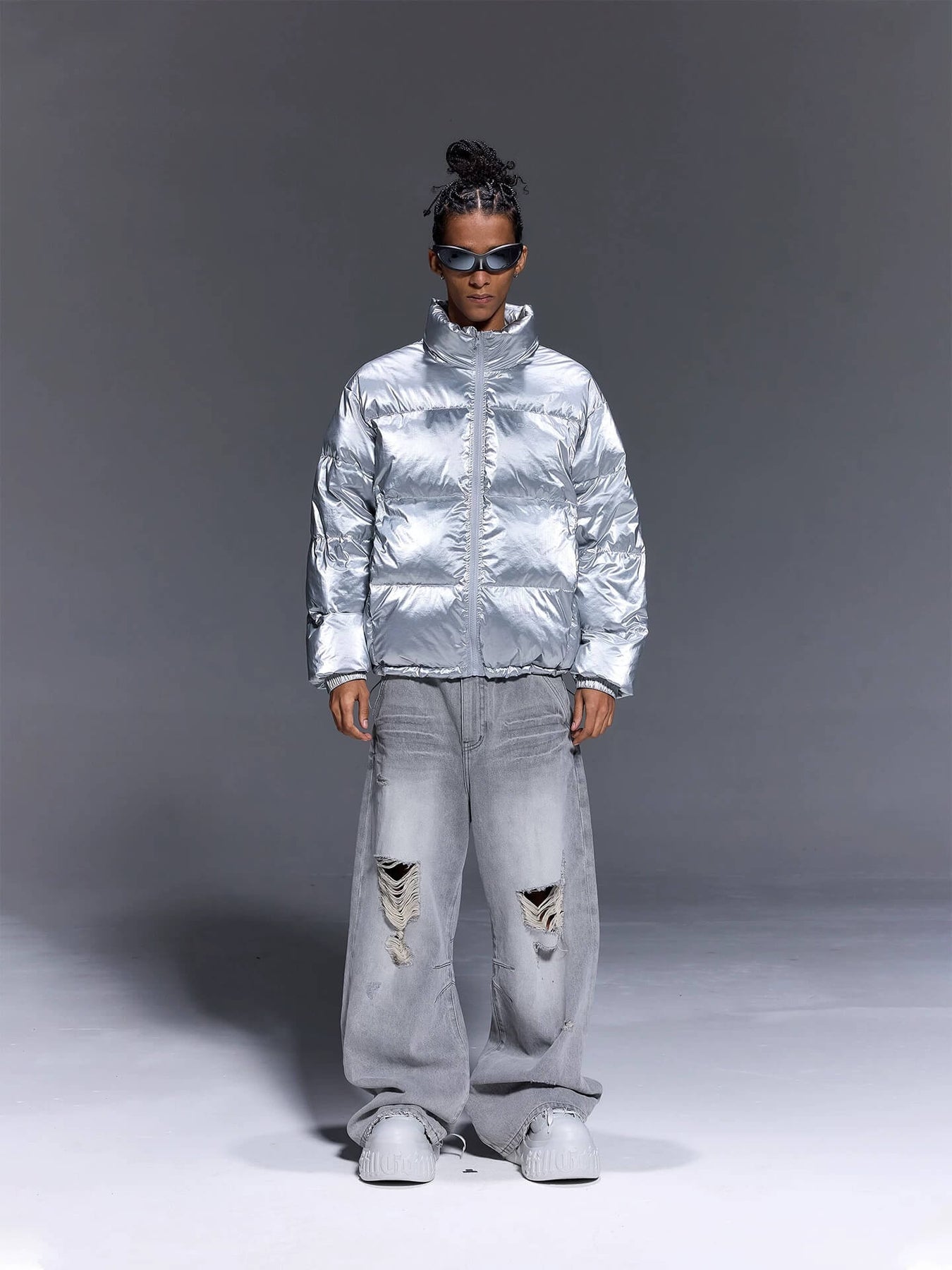 1807 Glossy Silver Down Jacket | Face 3 Face