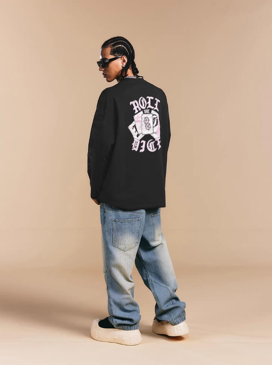1807 ROLLTHEDICE Vintage Printed Whisker Effect Long Sleeve Tee | Face 3 Face