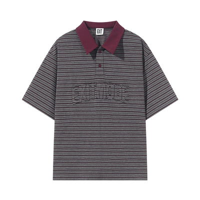 BLIND NO PLAN Striped Raw-Edge Patch Polo | Face 3 Face