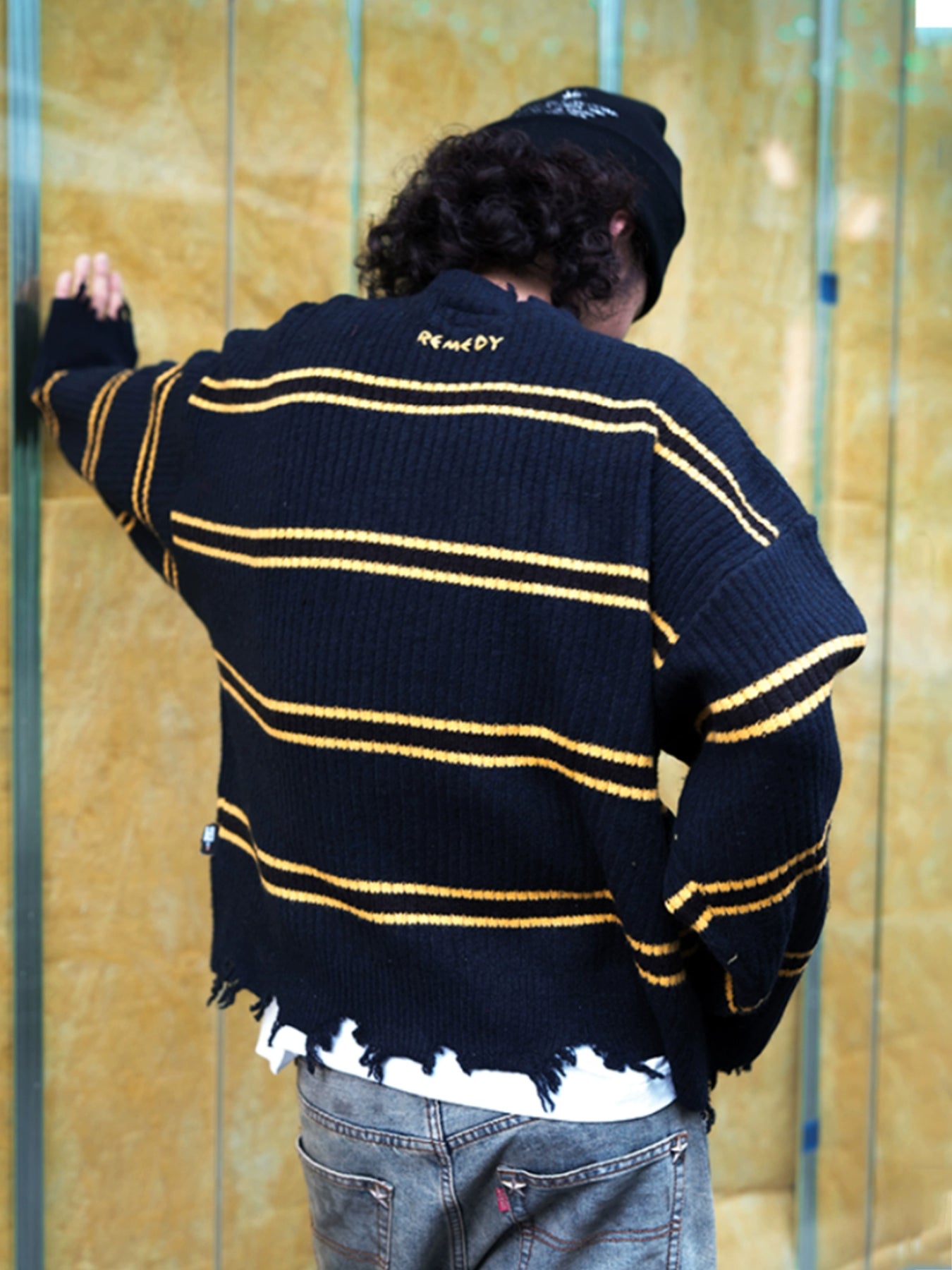 Remedy Striped Distressed Knit Sweater | Face 3 Face