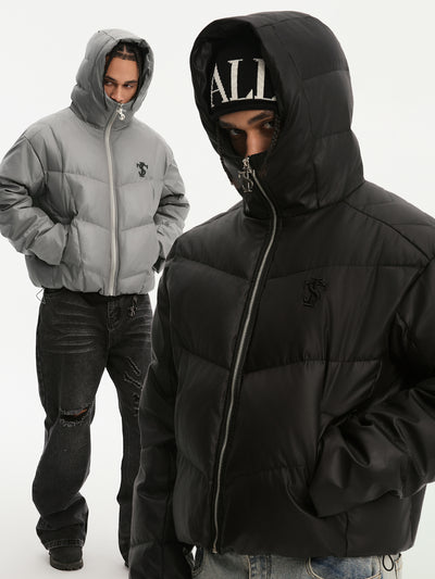 Small Town Kid Metallic Shiny Hooded Down Jacket | Face 3 Face