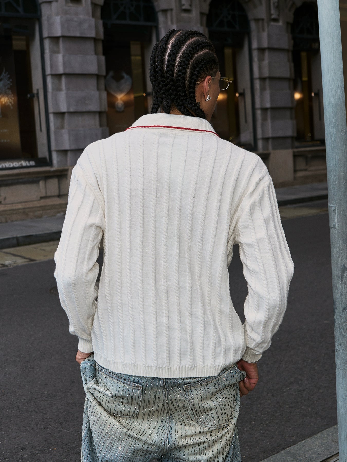 STEEPC Twisted Stripe Polo Knit Sweater | Face 3 Face