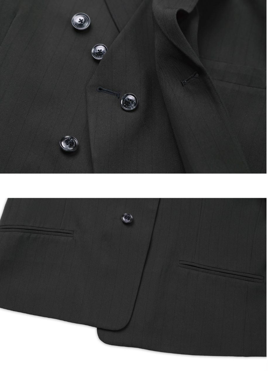 SOD Co. Deconstructed Pinstripe Double Breasted Short Suit Jacket