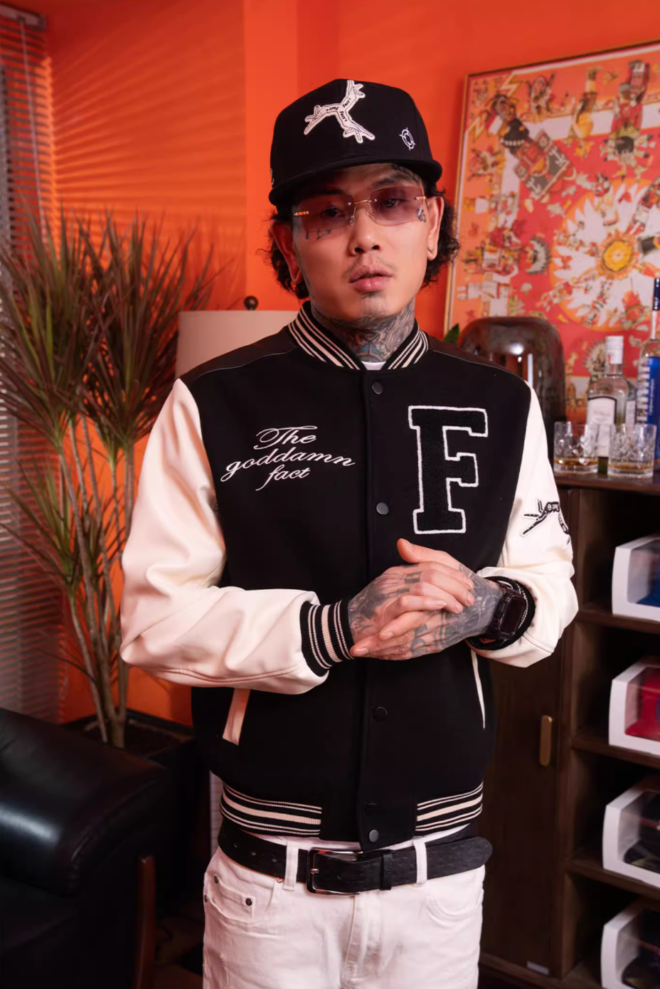 TGFCLUB Embroidery Patchwork PU Leather Varsity Jacket | Face 3 Face