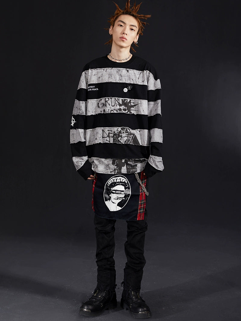 VENTUREK Black Gray Patchwork Long Sleeve Tee | Face 3 Face