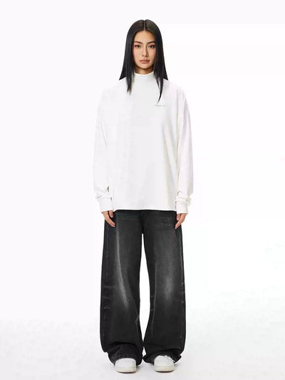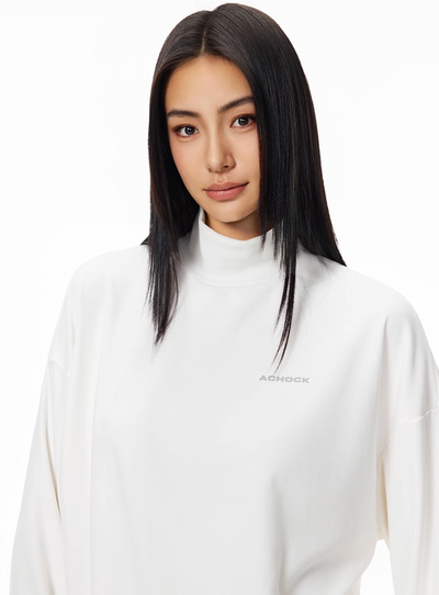 Achock Half High Neck Basic Logo Long Sleeve Tee | Face 3 Face