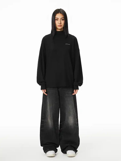 Achock Half High Neck Basic Logo Long Sleeve Tee