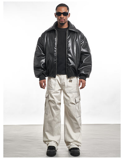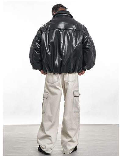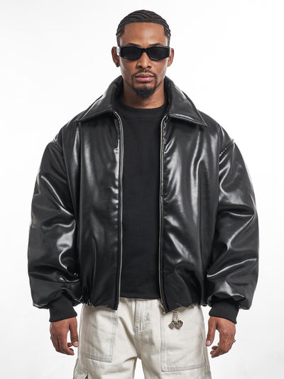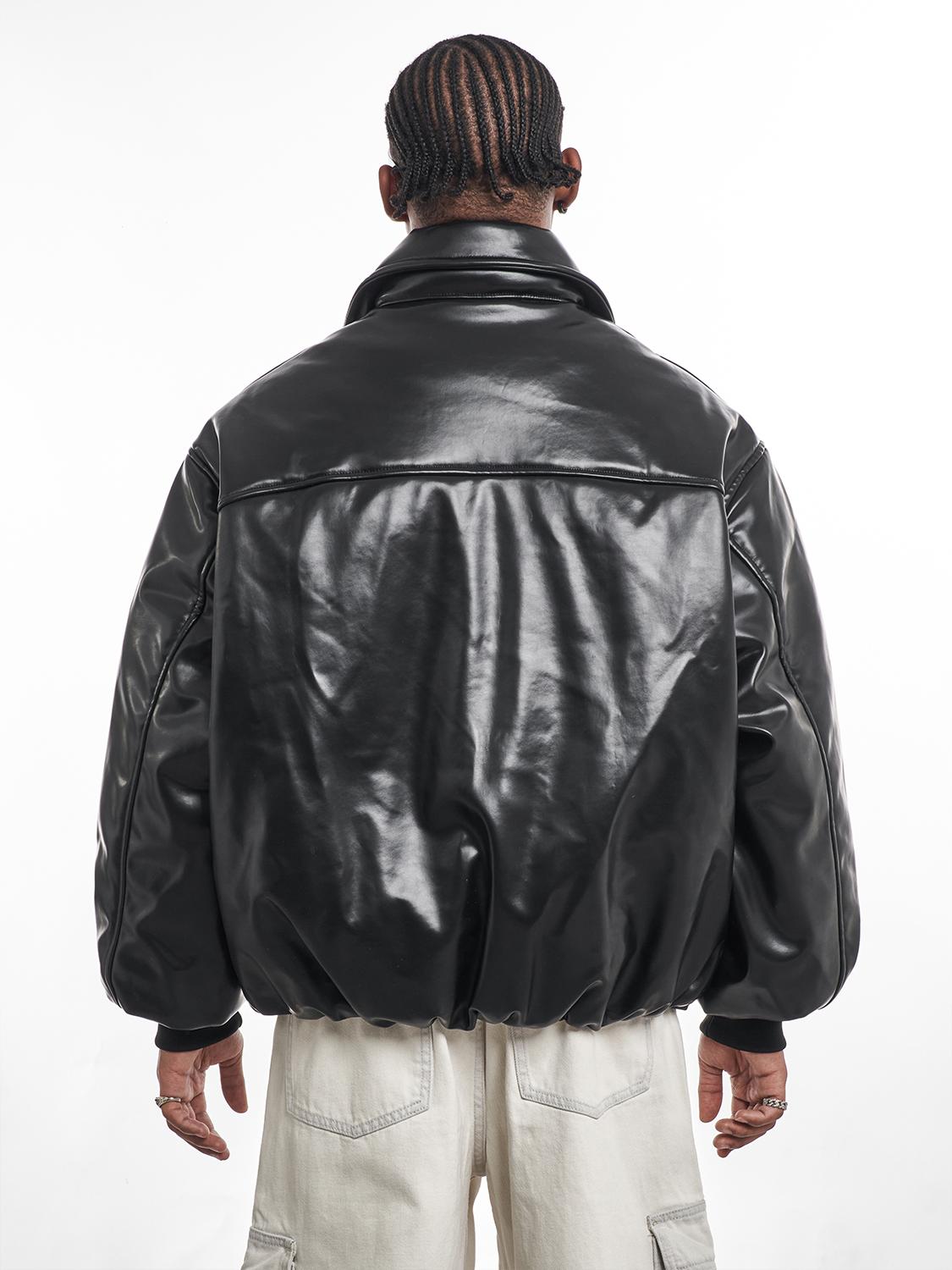F3F Select PU Leather Bomber Puffer Jacket