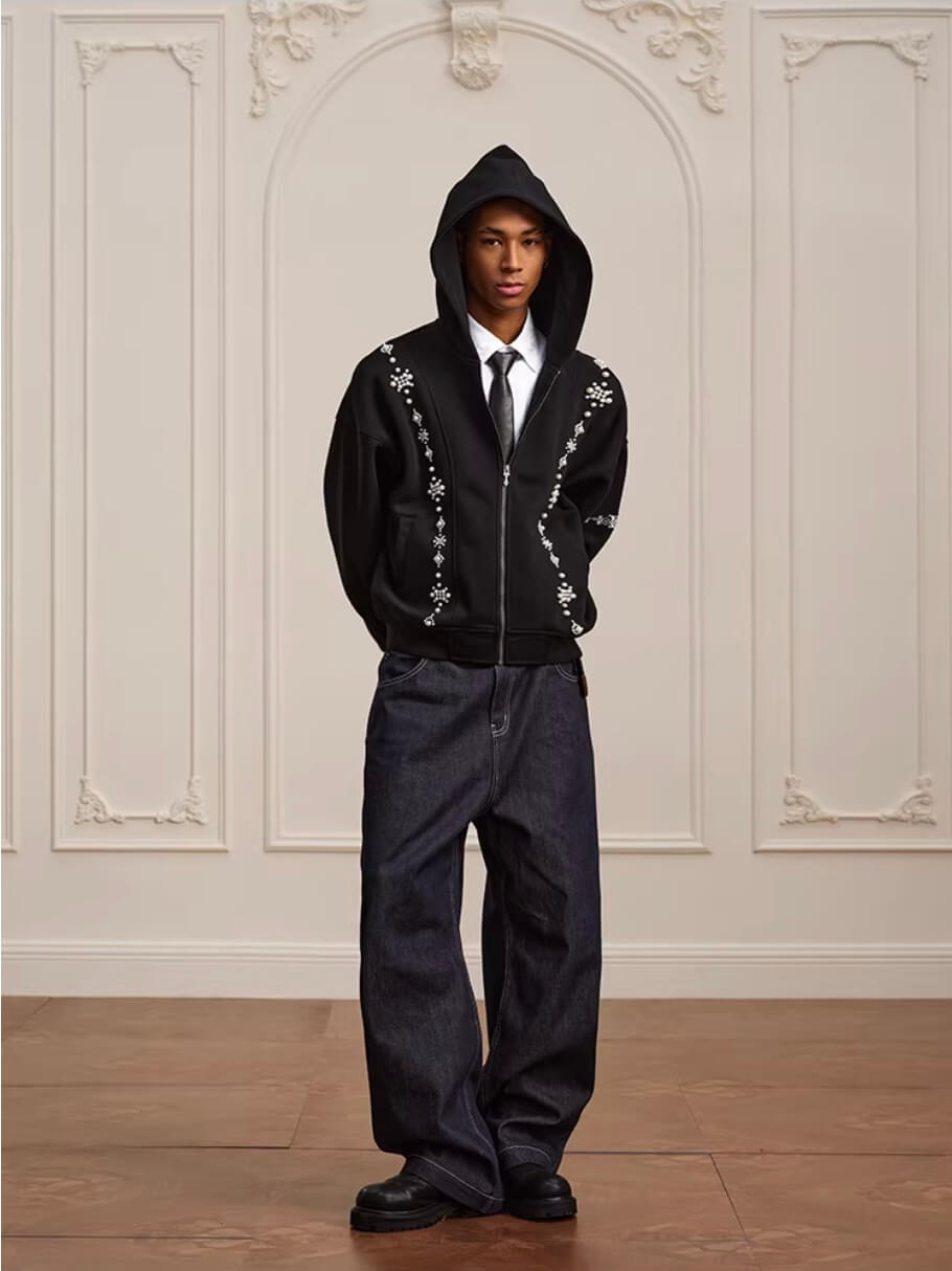 YADcrew Star Track Pearl Zip Up Hoodie