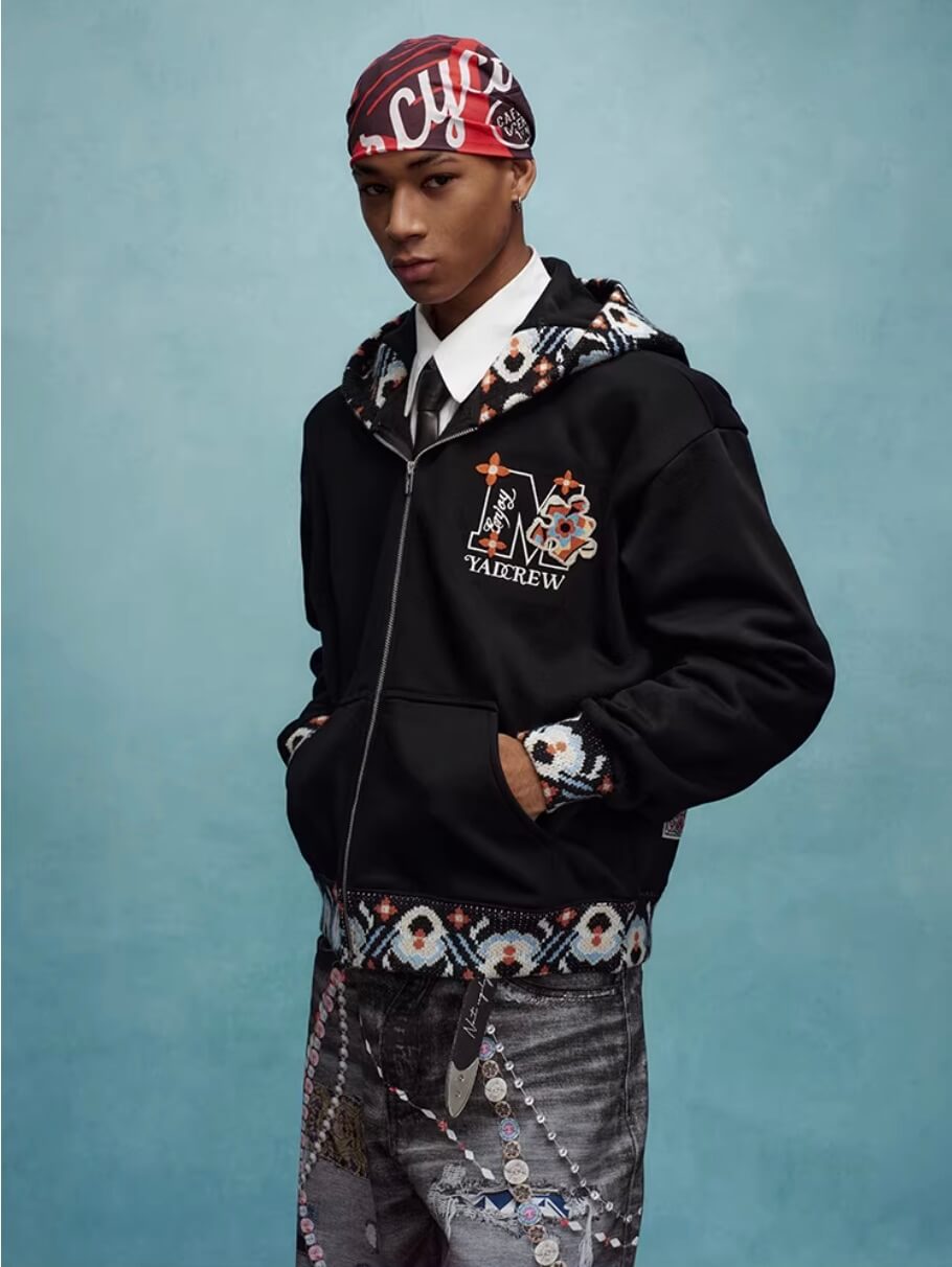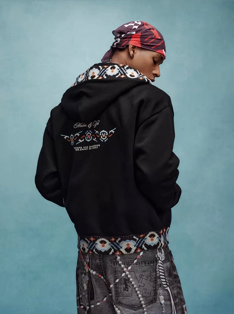 YADcrew x MEDM Ethnic Ribbed Zip Up Hoodie