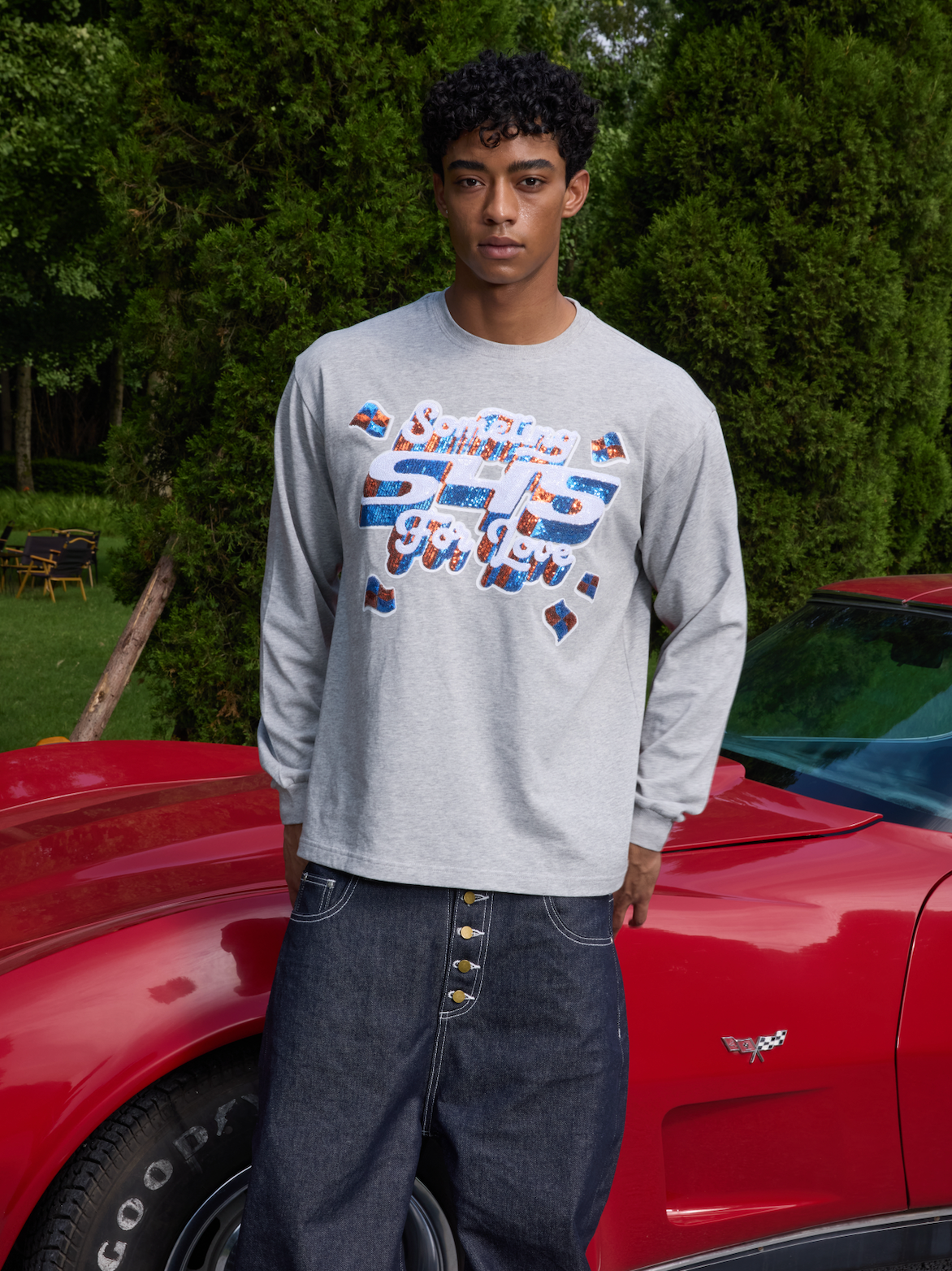 S45 3D Sequined Letter Logo Long Sleeve Tee | Face 3 Face