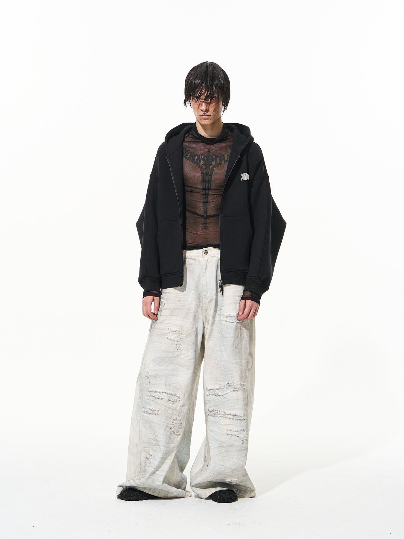 BLIND NO PLAN 3D Reconstructed Inverted Sleeves Zip-Up Hoodie