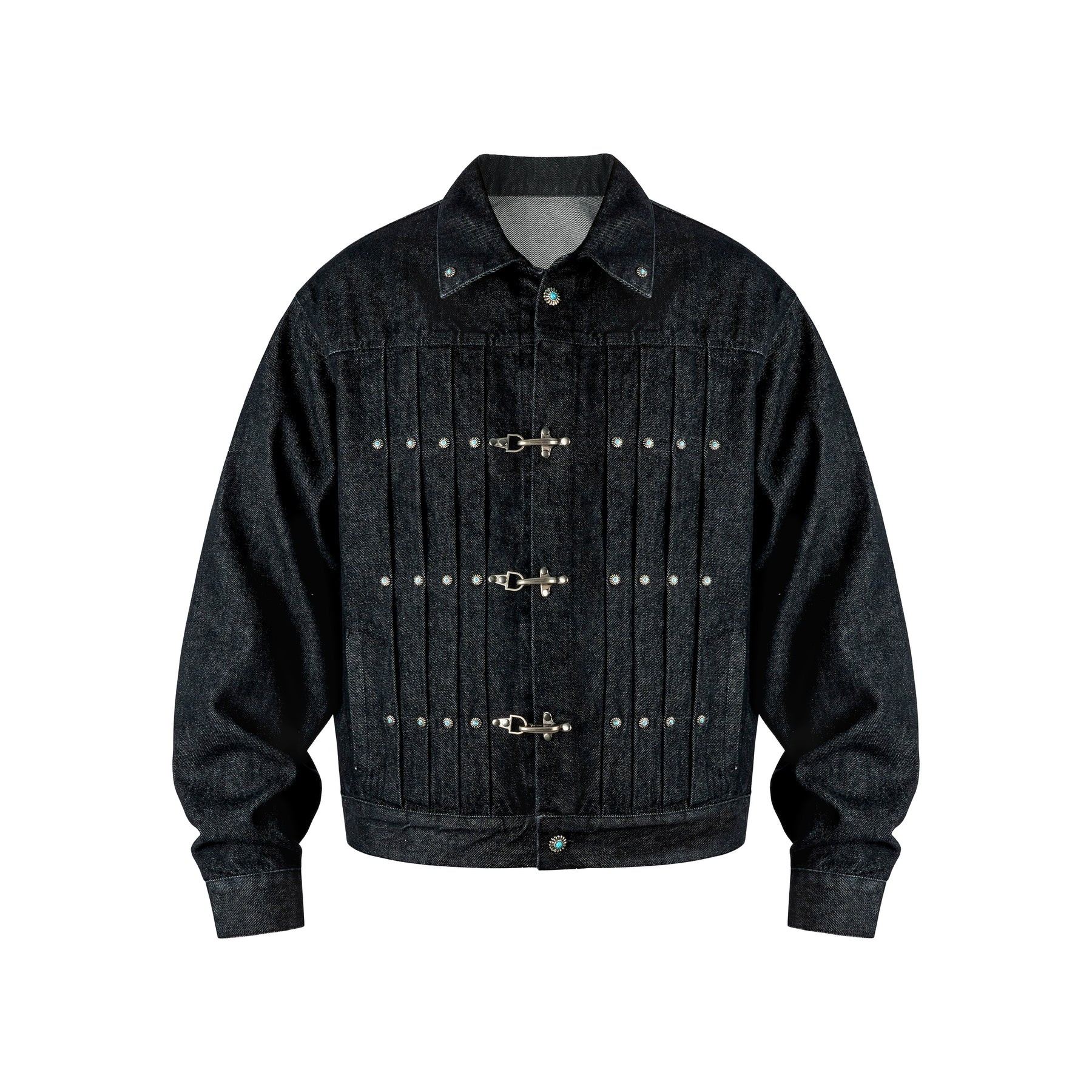 ANTIDOTE Turquoise Studded Pleated Buckle Denim Jacket | Face 3 Face