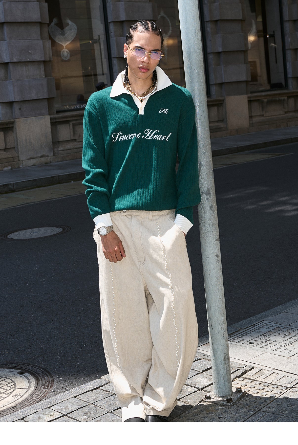 STEEPC Contrast Lapel Polo Knit Sweater | Face 3 Face