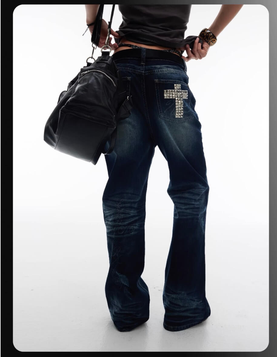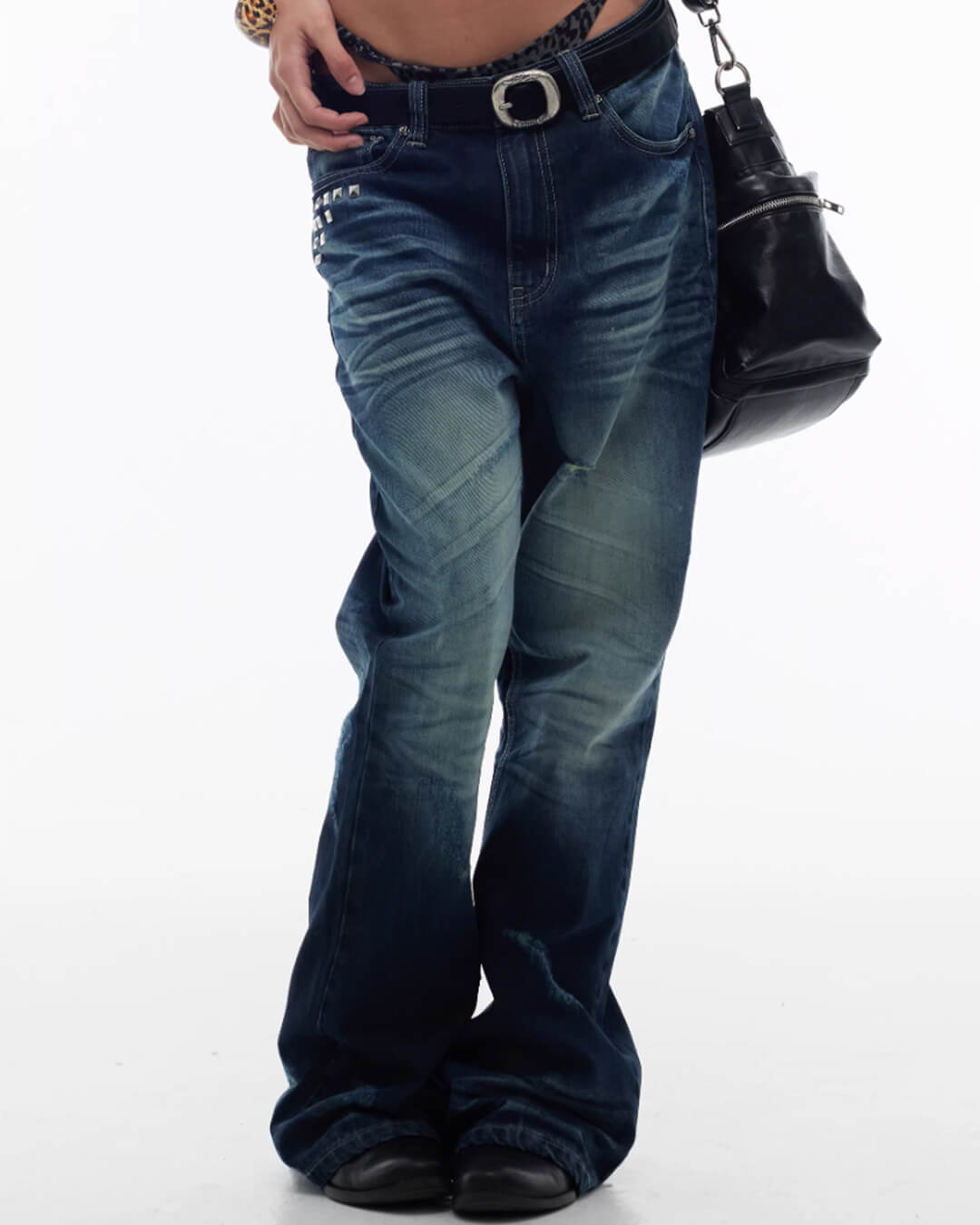 Night Lab Rock Studded Whisker Washed Flared Jeans | Face 3 Face