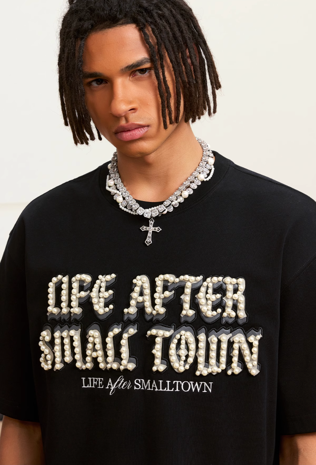 Small Town Kid Pearl Embroidered Leather Patch Tee | Face 3 Face