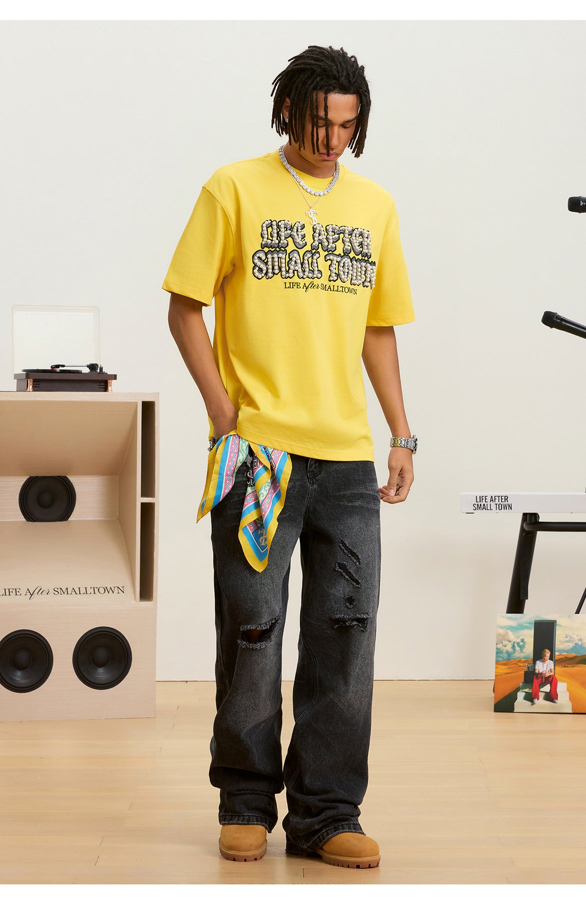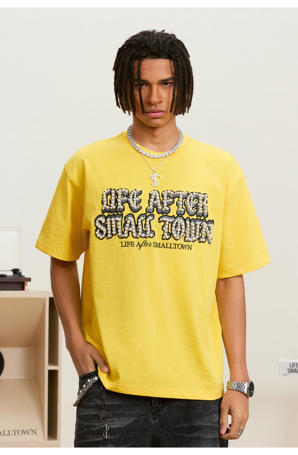 Small Town Kid Pearl Embroidered Leather Patch Tee
