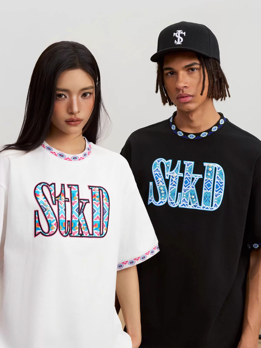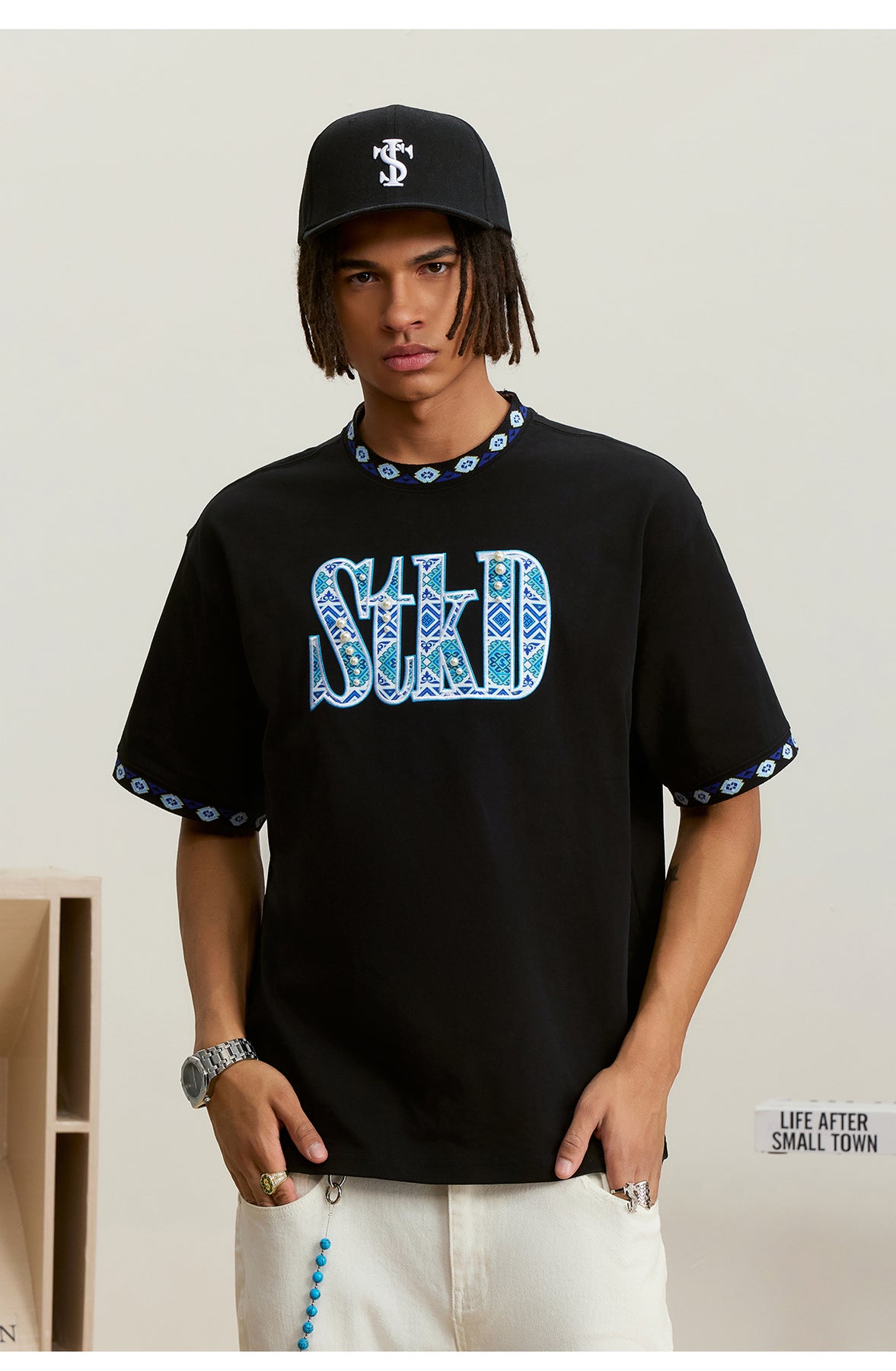Small Town Kid STKD Embroidered Ethnic Pattern Pearl Tee | Face 3 Face