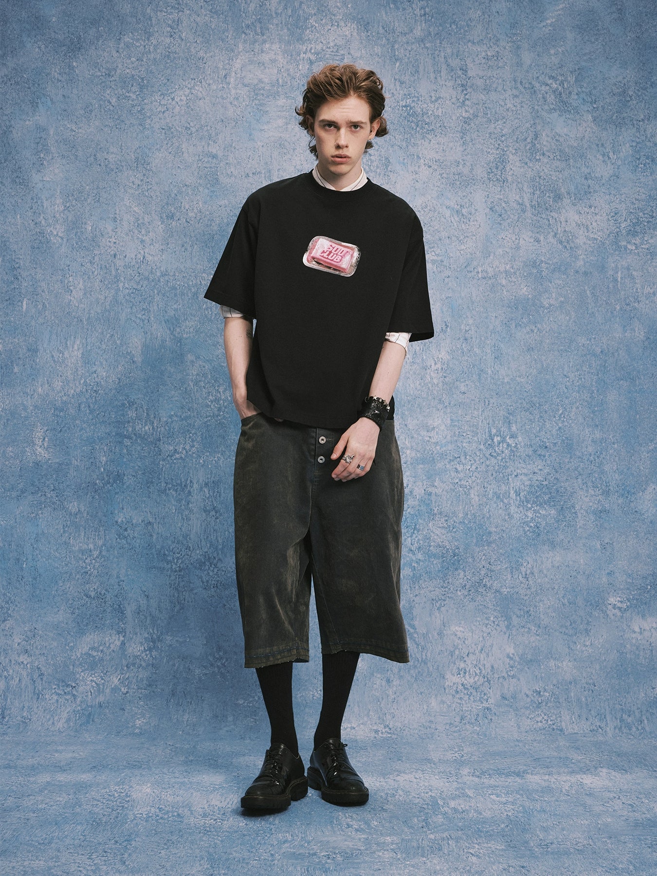 SOD Co. Washed Flocked Baggy Denim Shorts | Face 3 Face