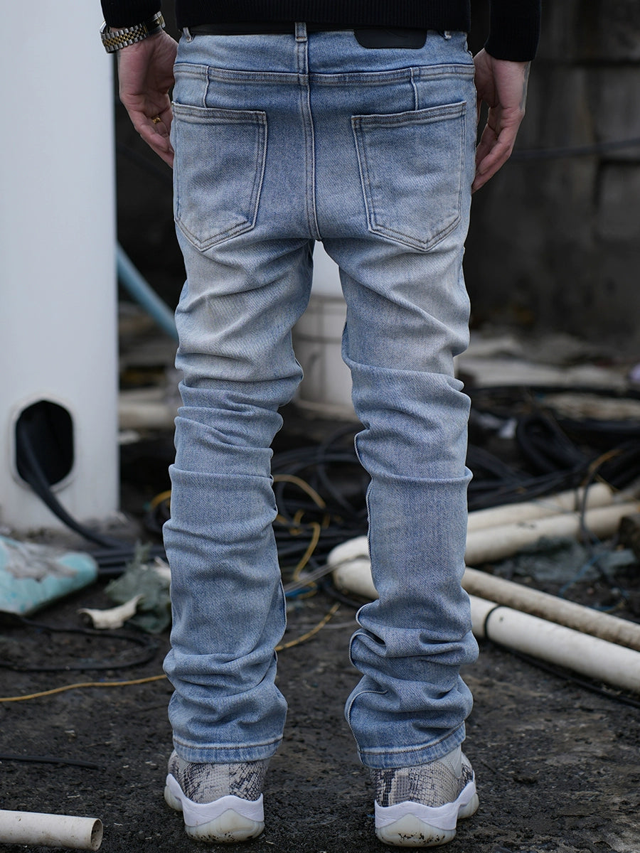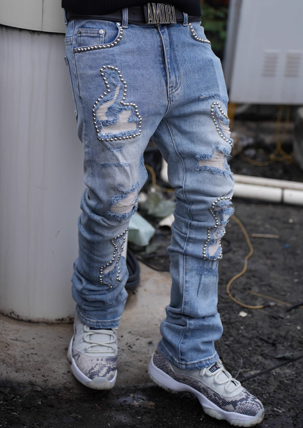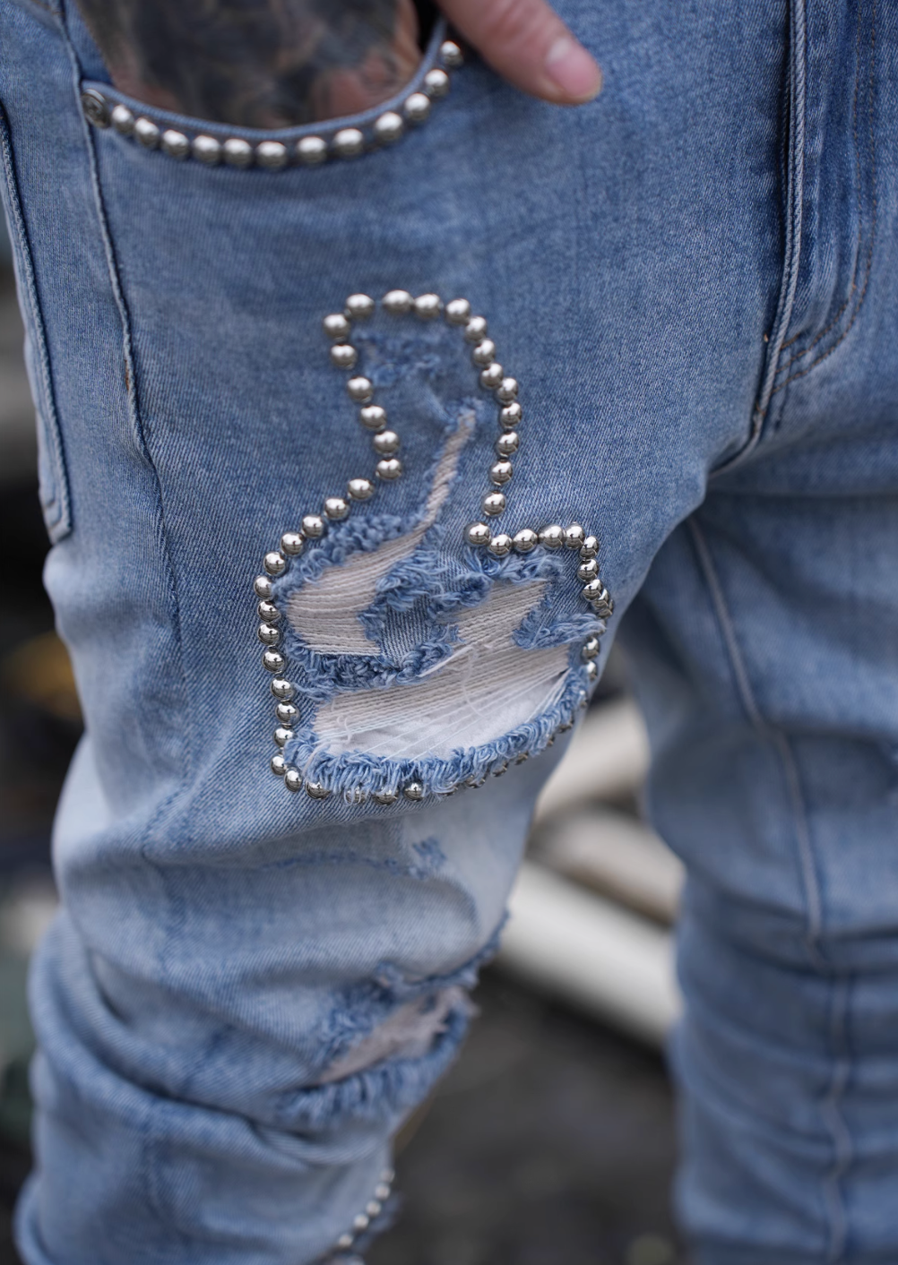 TGFCLUB Stud Beads Hole Washed Slim Fit Jeans | Face 3 Face