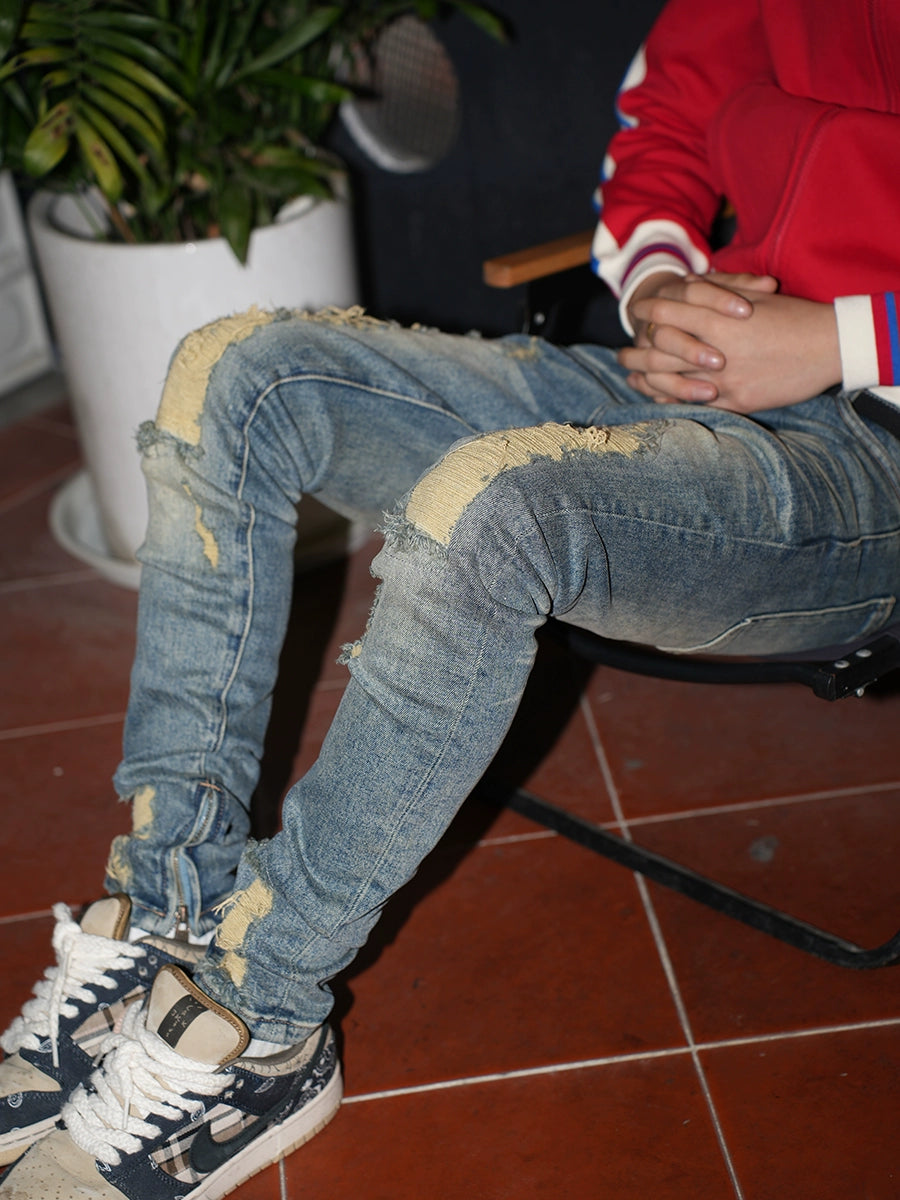 TGFCLUB Heavy Distressed Hem Zipper Slim Fit Jeans | Face 3 Face