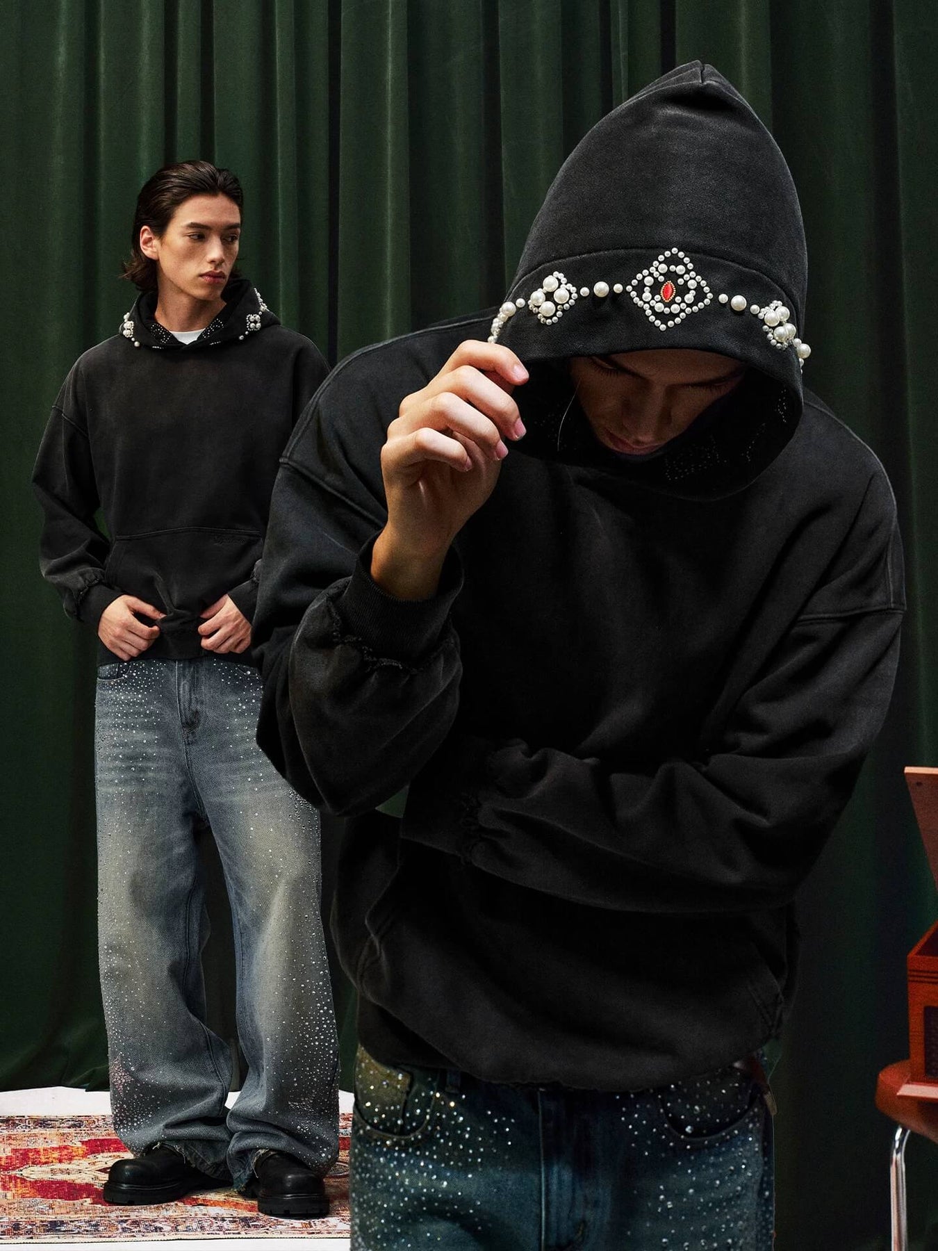 YADcrew Pearl Hood Washed Distressed Hoodie | Face 3 Face