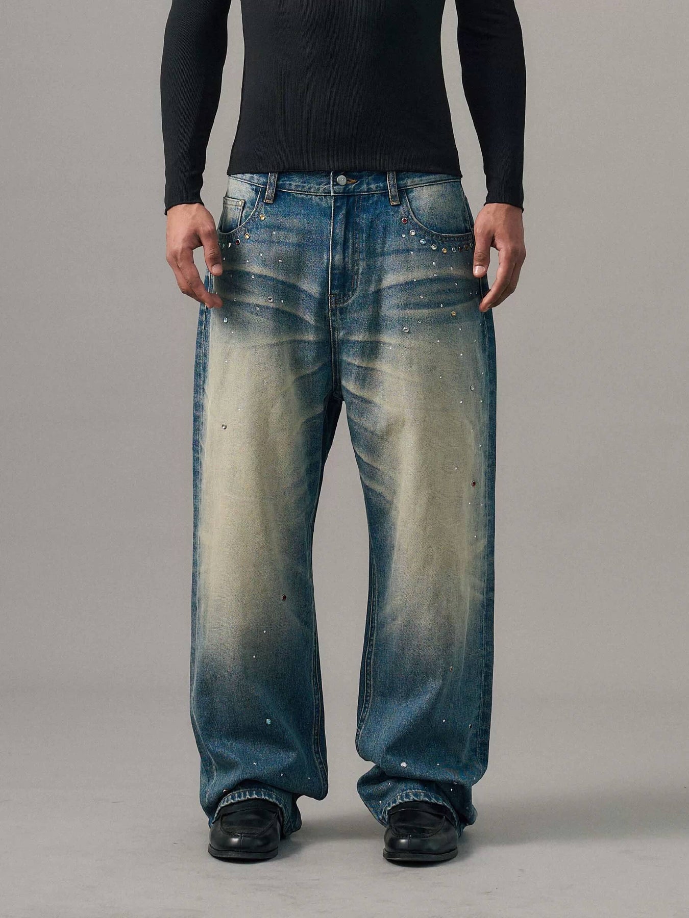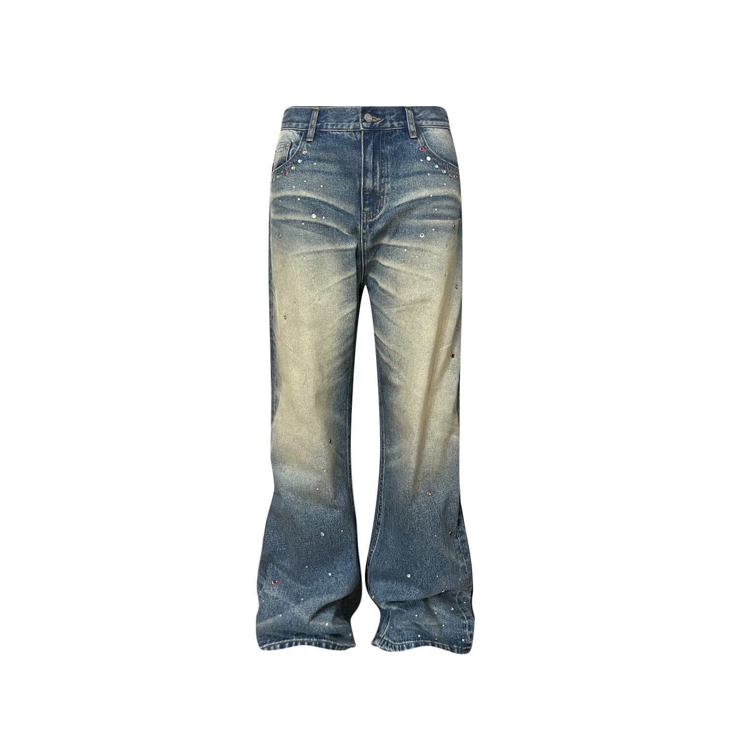 S45 Gemstone and Rhinestone Studded Washed Jeans