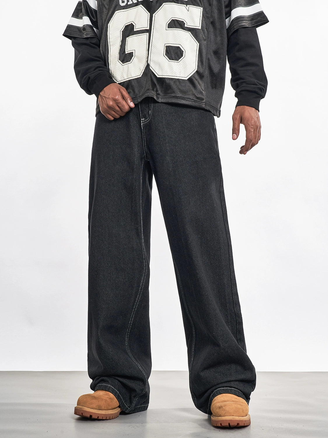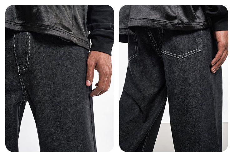 F3F Select Contrast Stitching Black Jeans | Face 3 Face