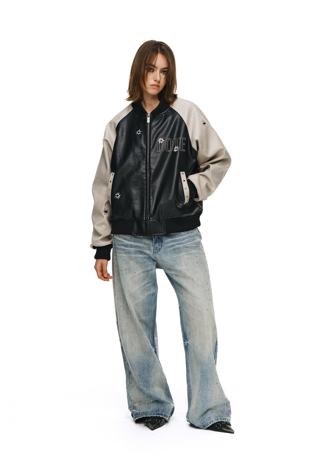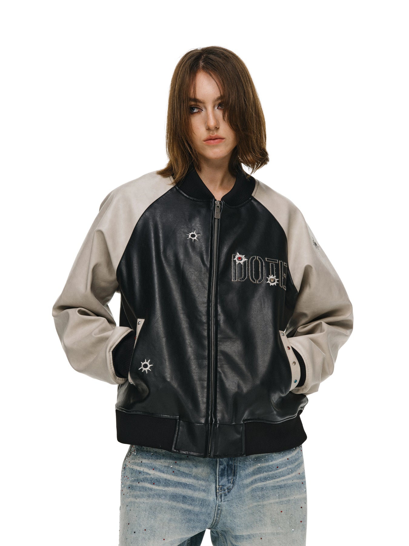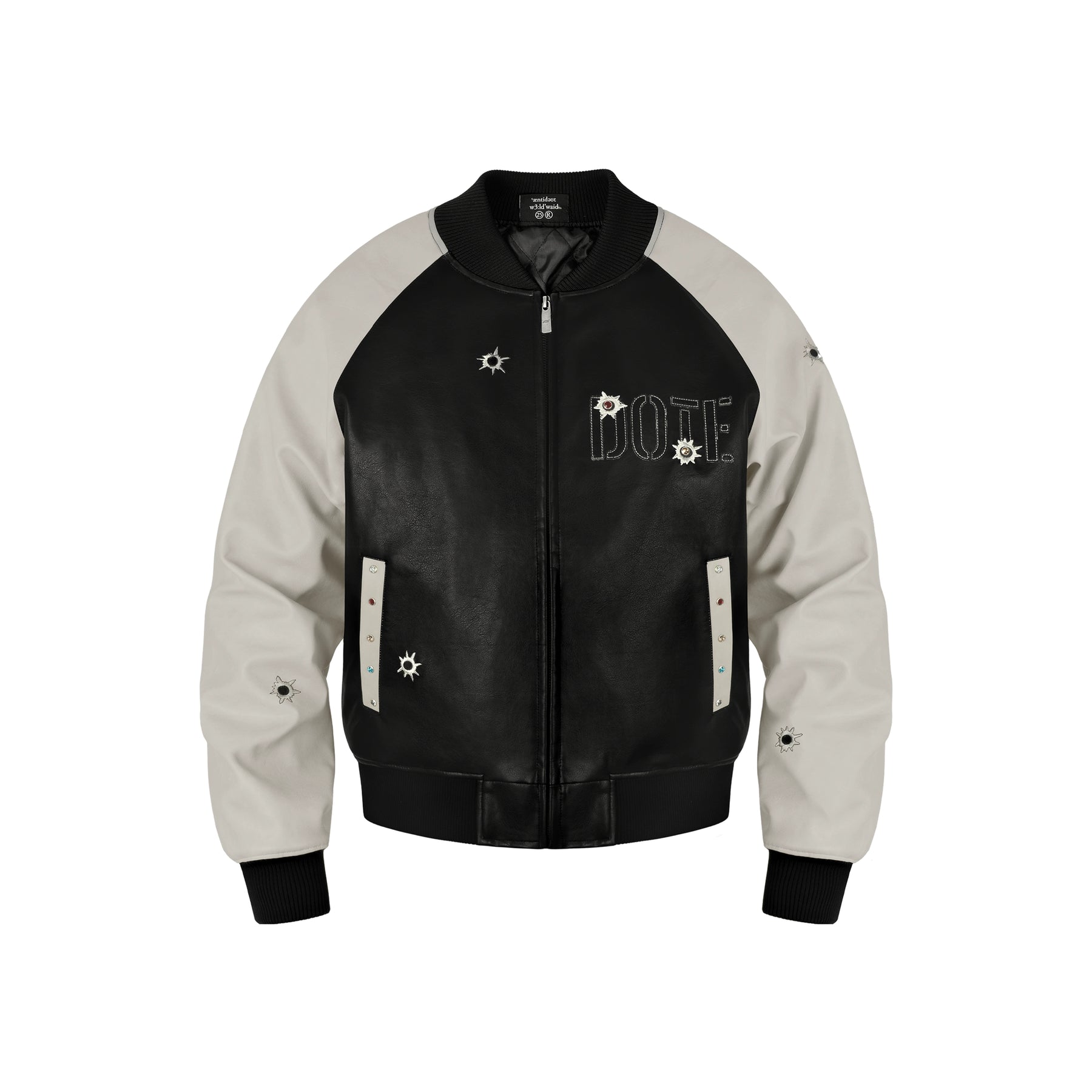 ANTIDOTE Bullseye Color Diamond Studded Leather Baseball Jacket