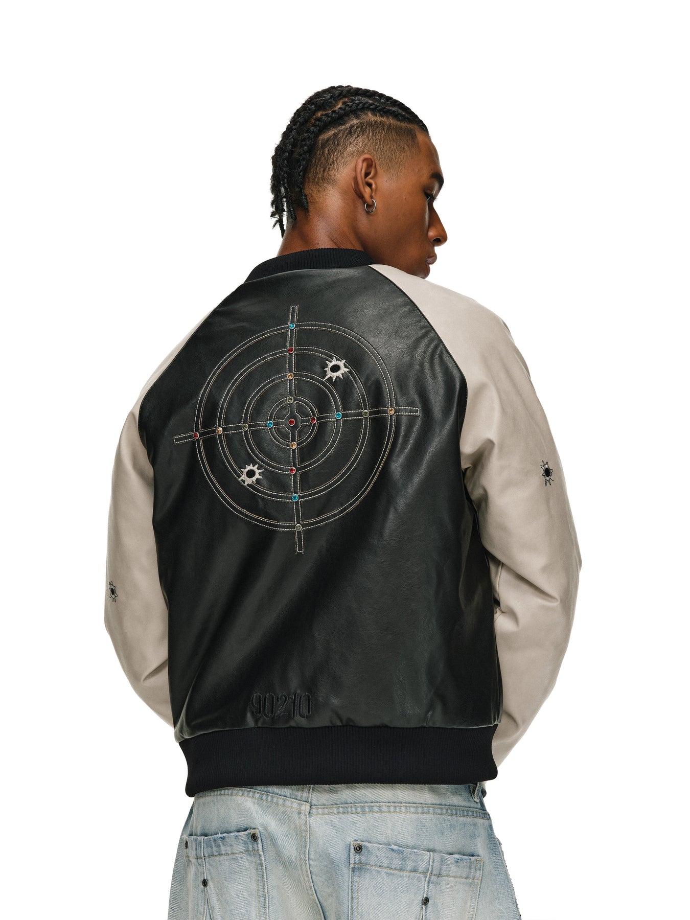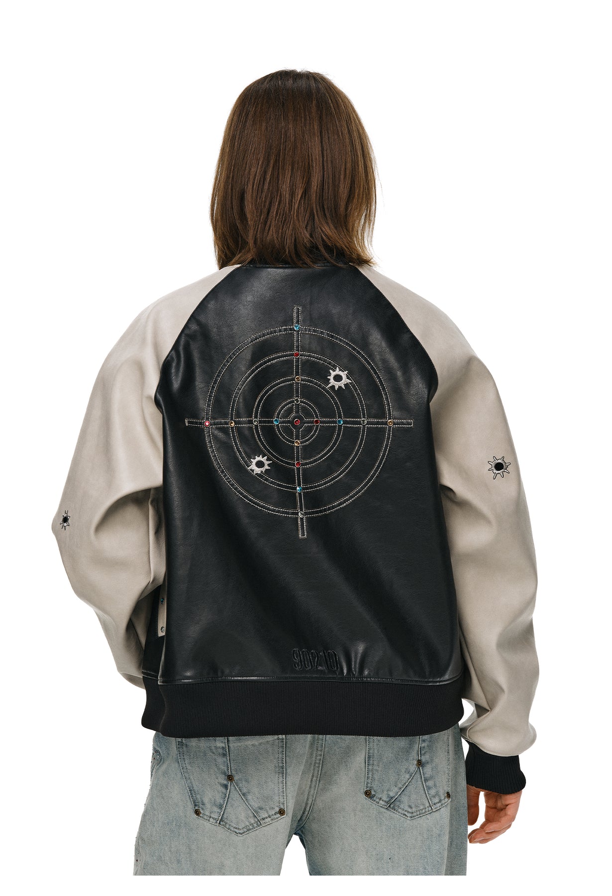 ANTIDOTE Bullseye Color Diamond Studded Leather Baseball Jacket | Face 3 Face
