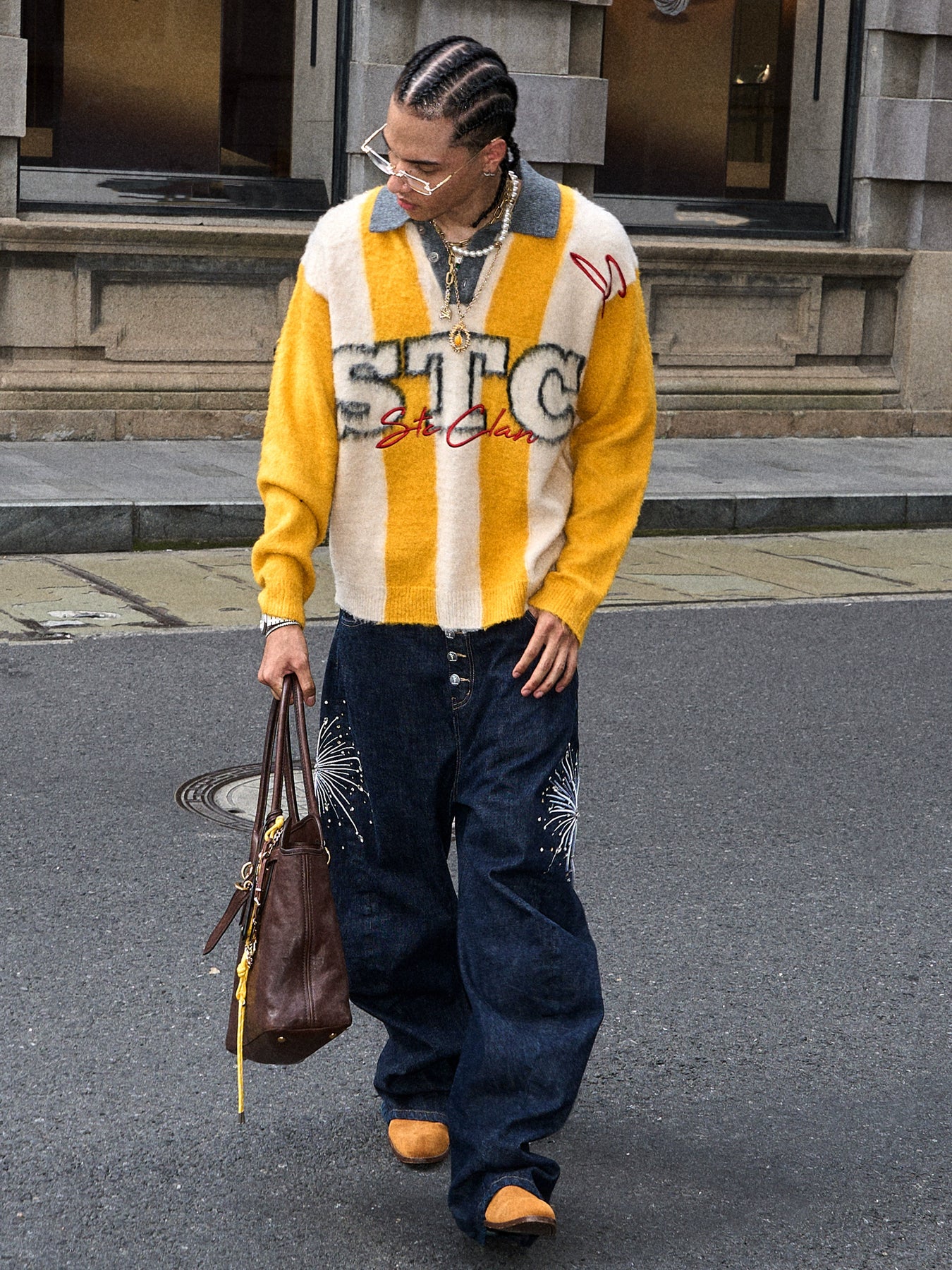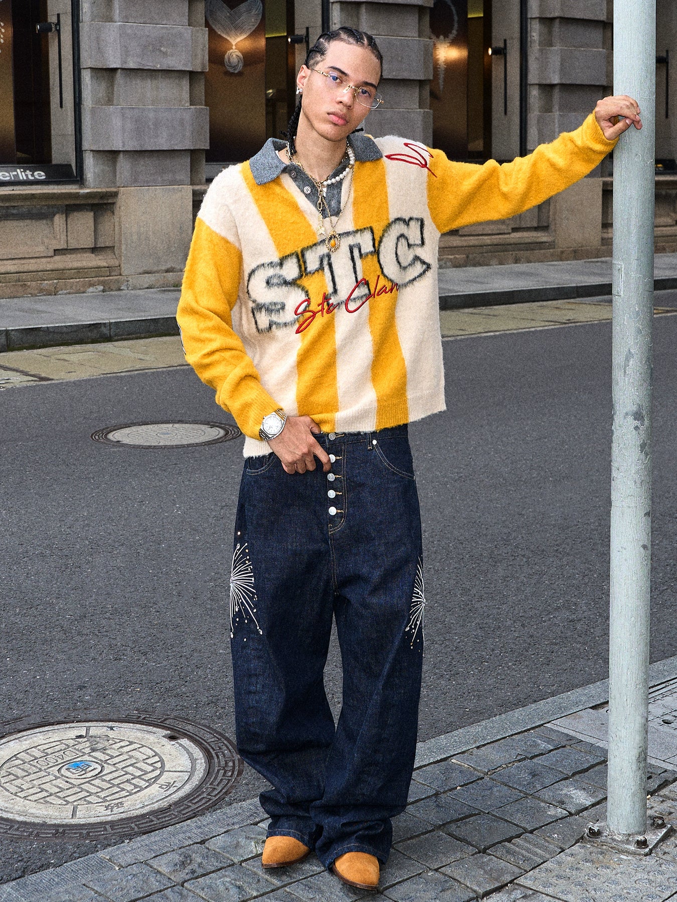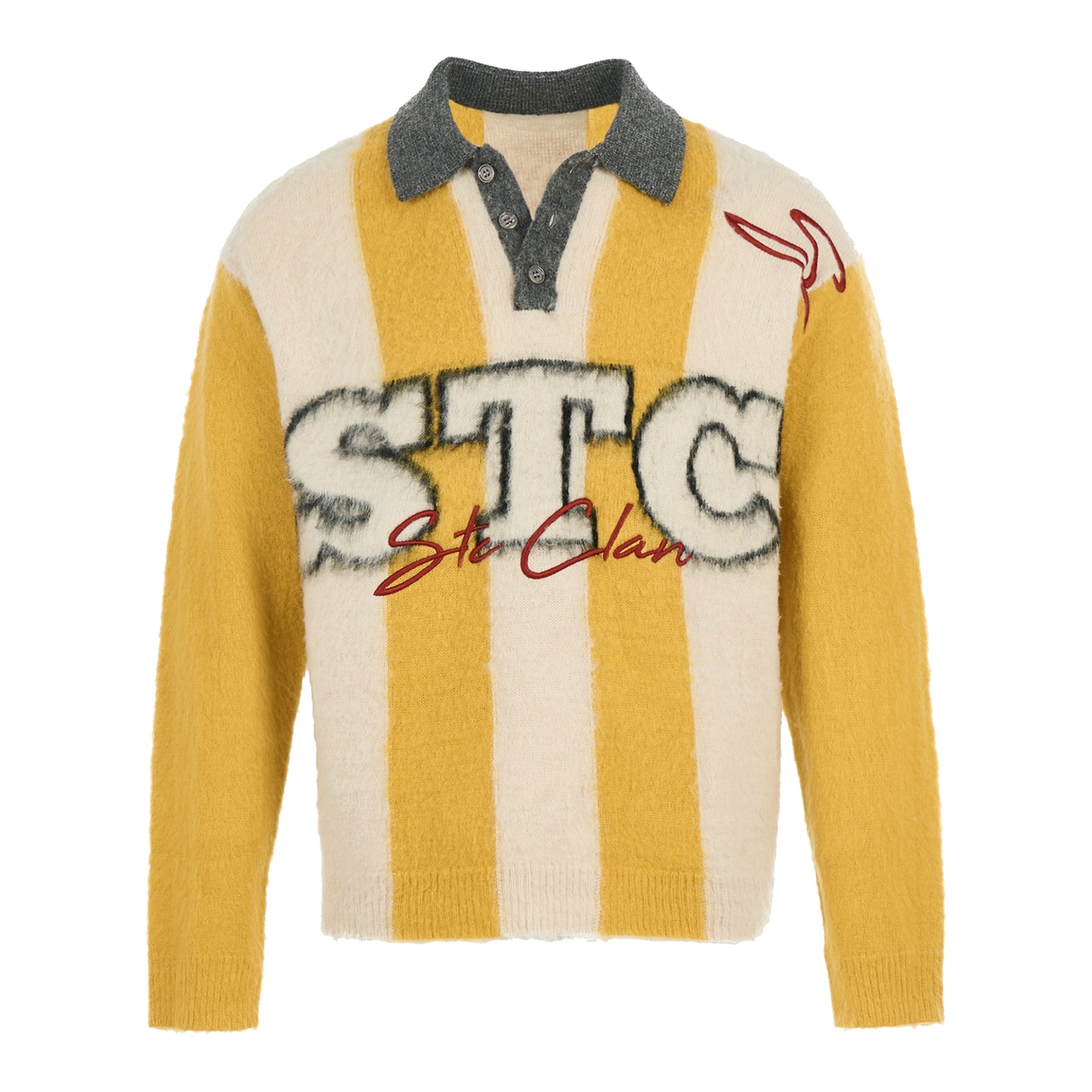 STEEPC Vertical Stripe Brushed Knit Polo Sweater