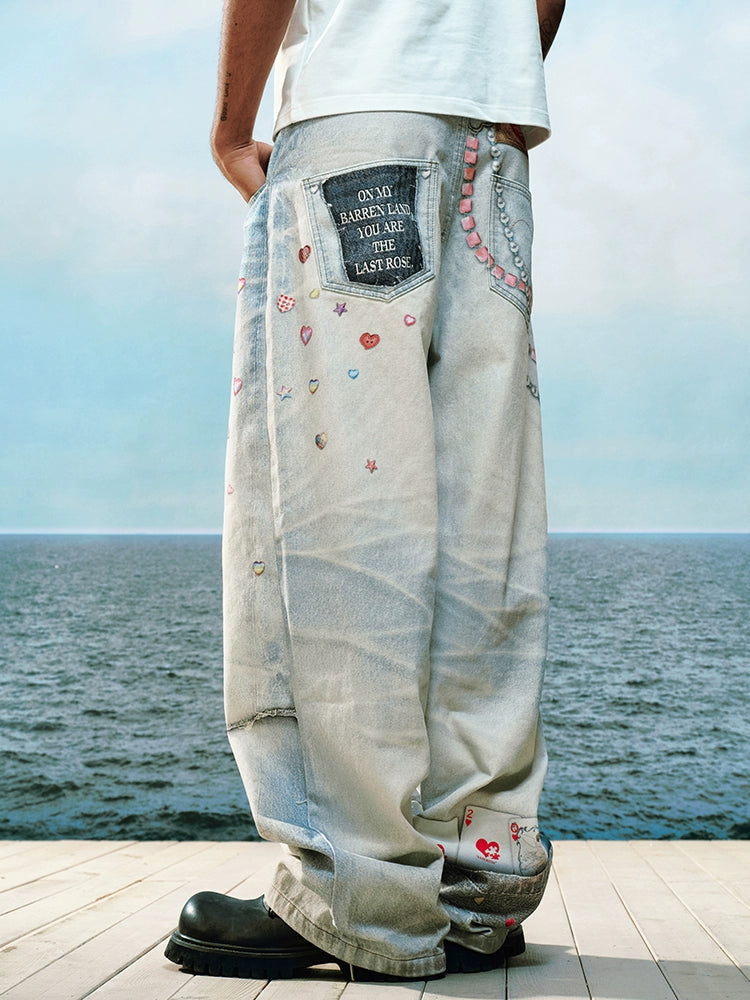 YADcrew Cute Heart Photorealistic Print Jeans | Face 3 Face