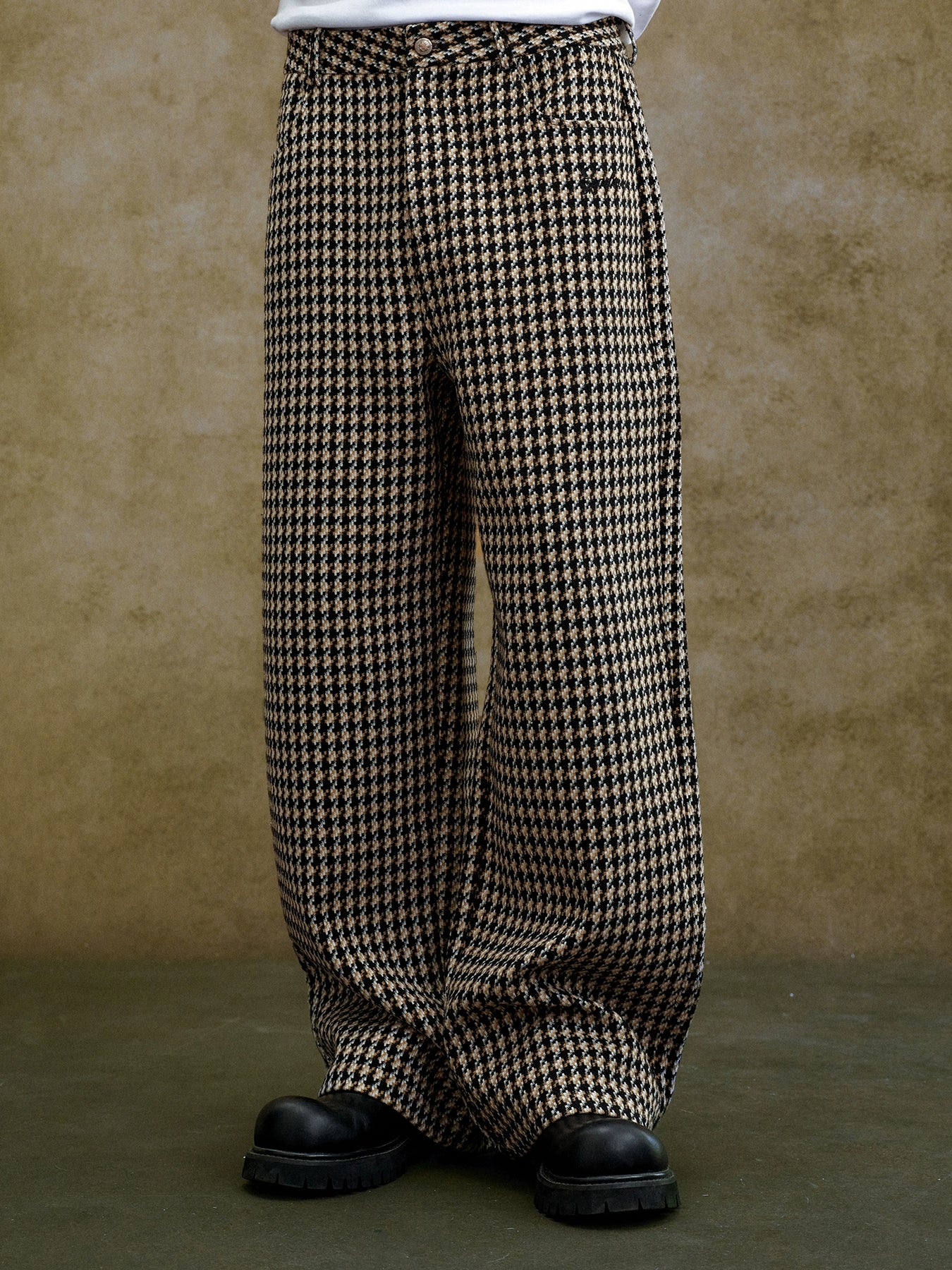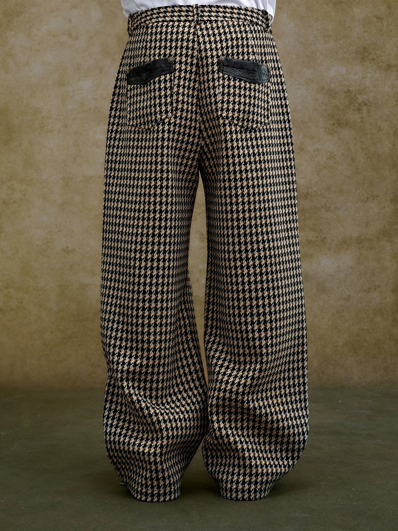 YADcrew Houndstooth Patchwork Leather Pants | Face 3 Face